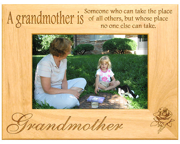 'A grandmother is someone who can take the place of all others, but whose place no one else can take.'' This beautiful alder frame can be personalized by changing the messages in three areas of this frame- upper left, upper right, and bottom left. Personalizing is optional- so if you like what it already says, you can leave it as is. Item# fam0082