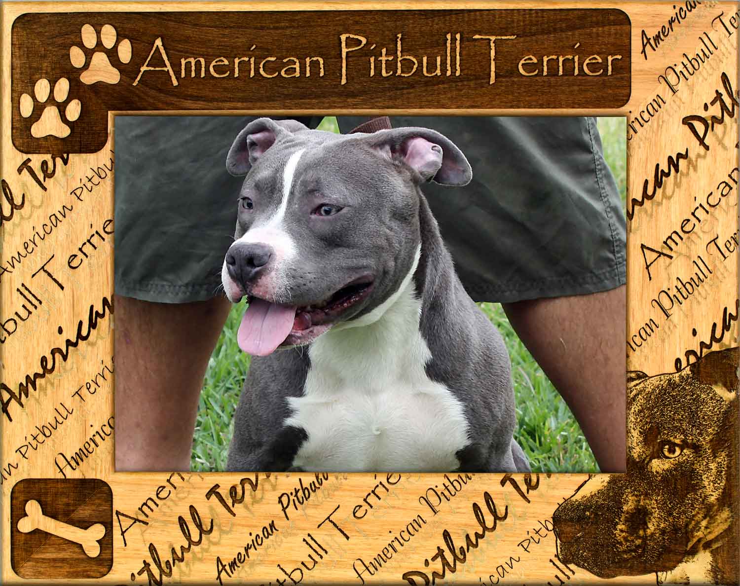 Strong and athletic, the American Pitbull Terrier is a loveable furry family member. Put your favorite Pitbull on display with this striking dog frame engraved with the picture and name of the breed. This detailed alderwood frame is ideal for showing off your pet dog's pictures! Available with free personalization and multiple size and orientation options, a GiftWorksPlus animal photo frame makes the perfect picture gift.