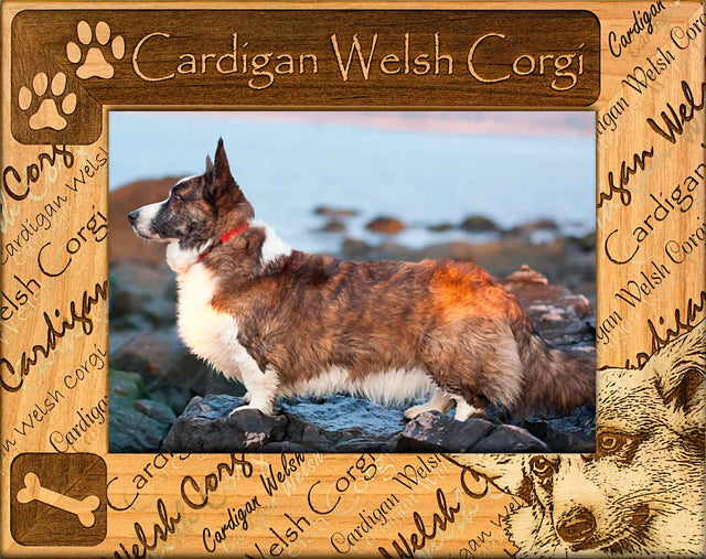 The legendary Cardigan Welsh Corgi has been featured in folktales from battling dragons to aiding the Queen of England. These heroic four legged friends are distinguished in the Cardigan Welsh Corgi personalized picture frame by GiftWorksPlus. With custom framing, these wooden frames come in various sizes with detailed engravings. Master crafted and designed in the USA.