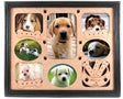 Your doggies are your best friends; why not display their photographs in fun, cute picture frames with engraved wooden photo matte. Featuring cutout dog bones, places for seven photos, and room for up to two pet names, this personalized frame will proudly show how much you love the doggies in the photo matte windows. It also makes an excellent dog owner gift or dog memorial gift. Choose from black or oak frame and horizontal or vertical orientation. Item# pet0123