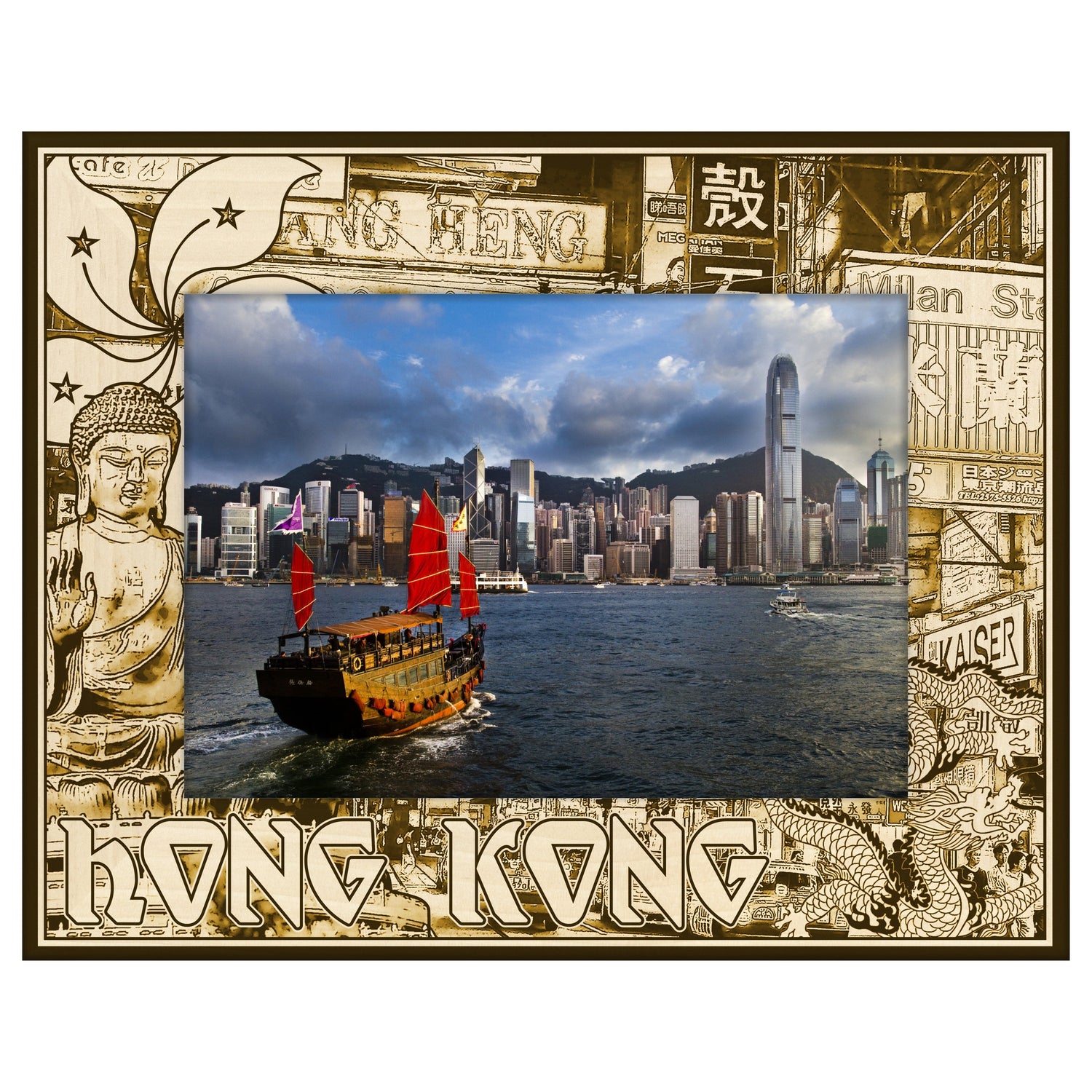 Engraved Alderwood Frame - A-FRM_-1-0020 - Hong Kong China City Scene Destination Collage - 3.5x5 / Horizontal is backordered and will ship as soon as it is back in stock.