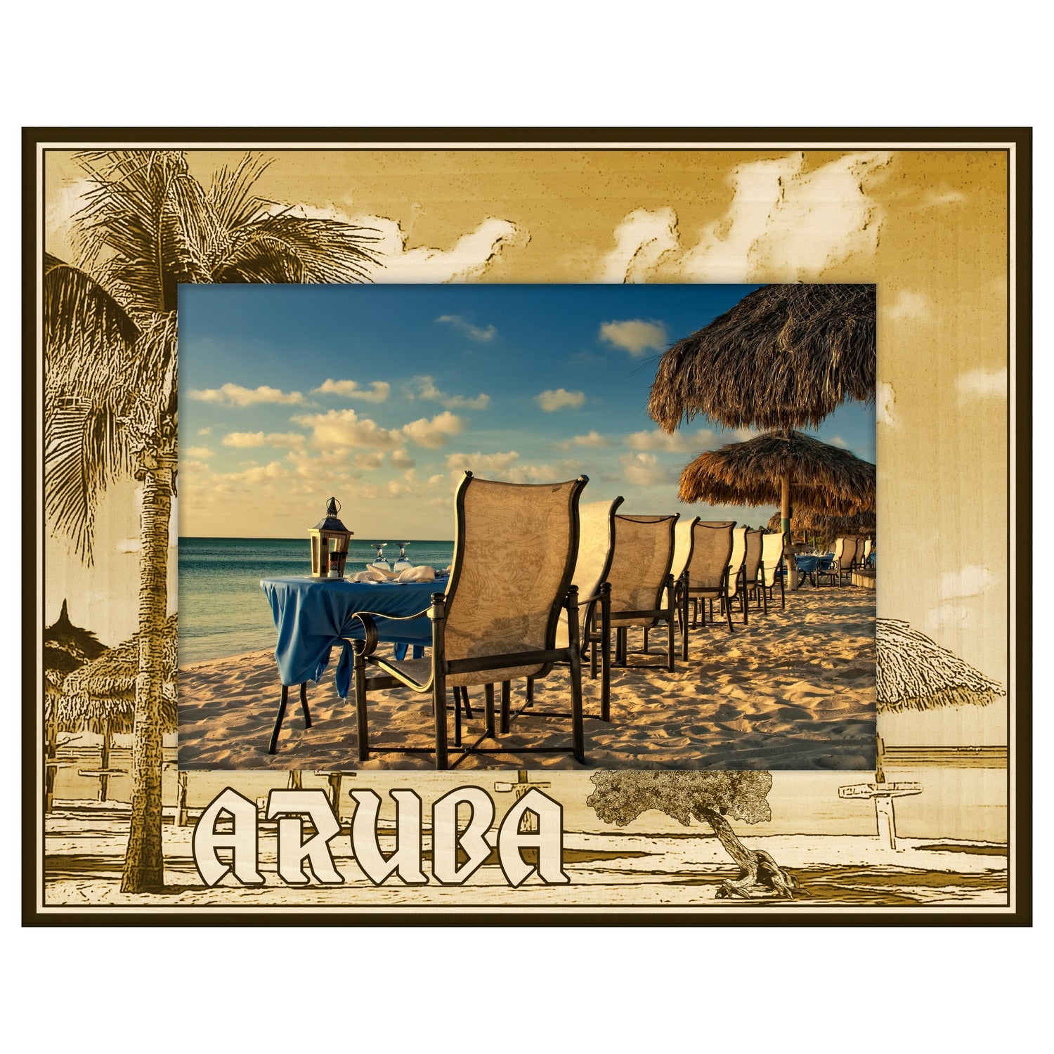Capture the essence of paradise with the Aruba Palm Tree Beach Frame! This stunning frame features a tropical design that showcases a swaying palm tree and sun-kissed beaches, making it the perfect way to display your favorite vacation memories.