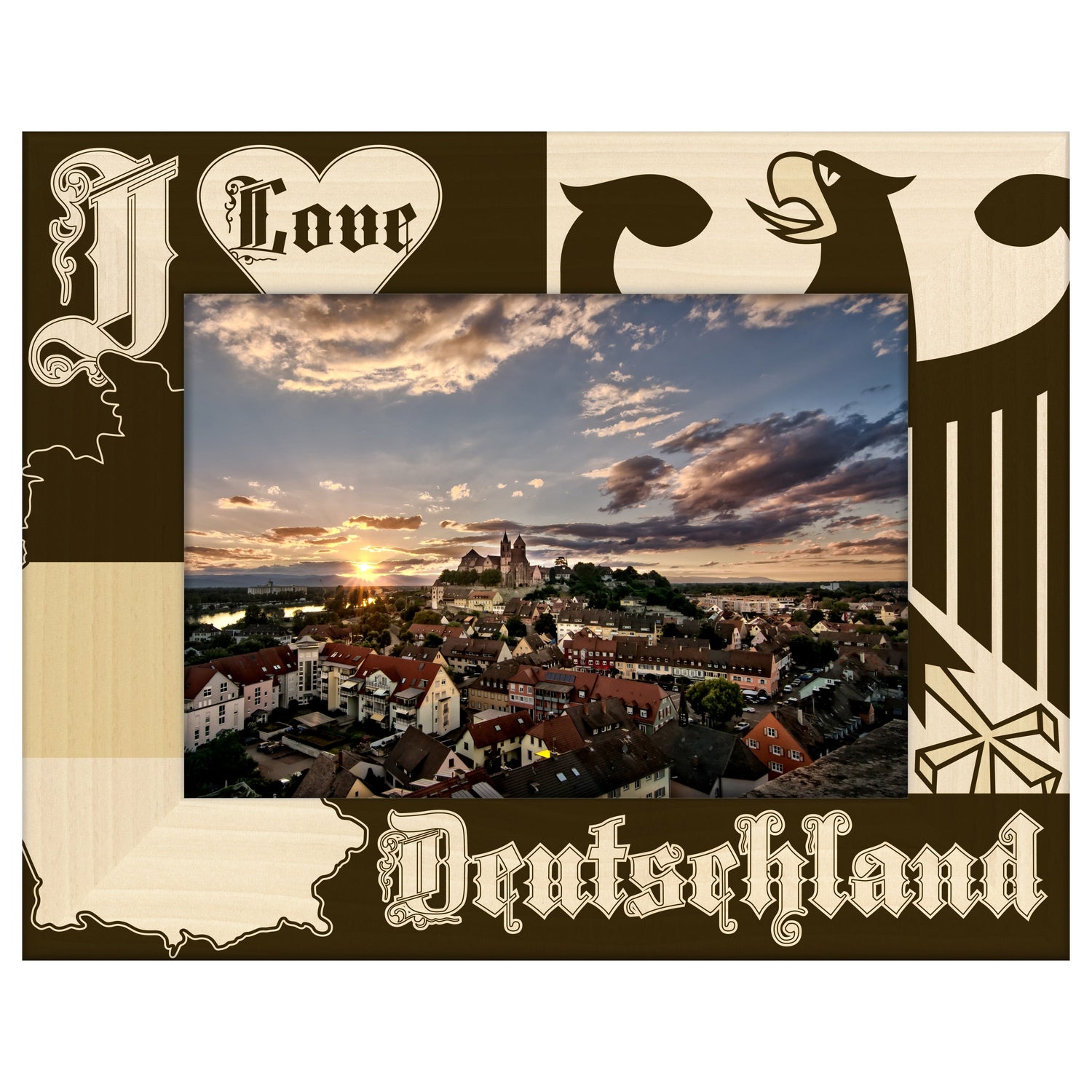 Show off your love for Germany with our I Love Deutschland engraved wooden picture frame. This frame features a charming design that beautifully showcases your favorite memories.