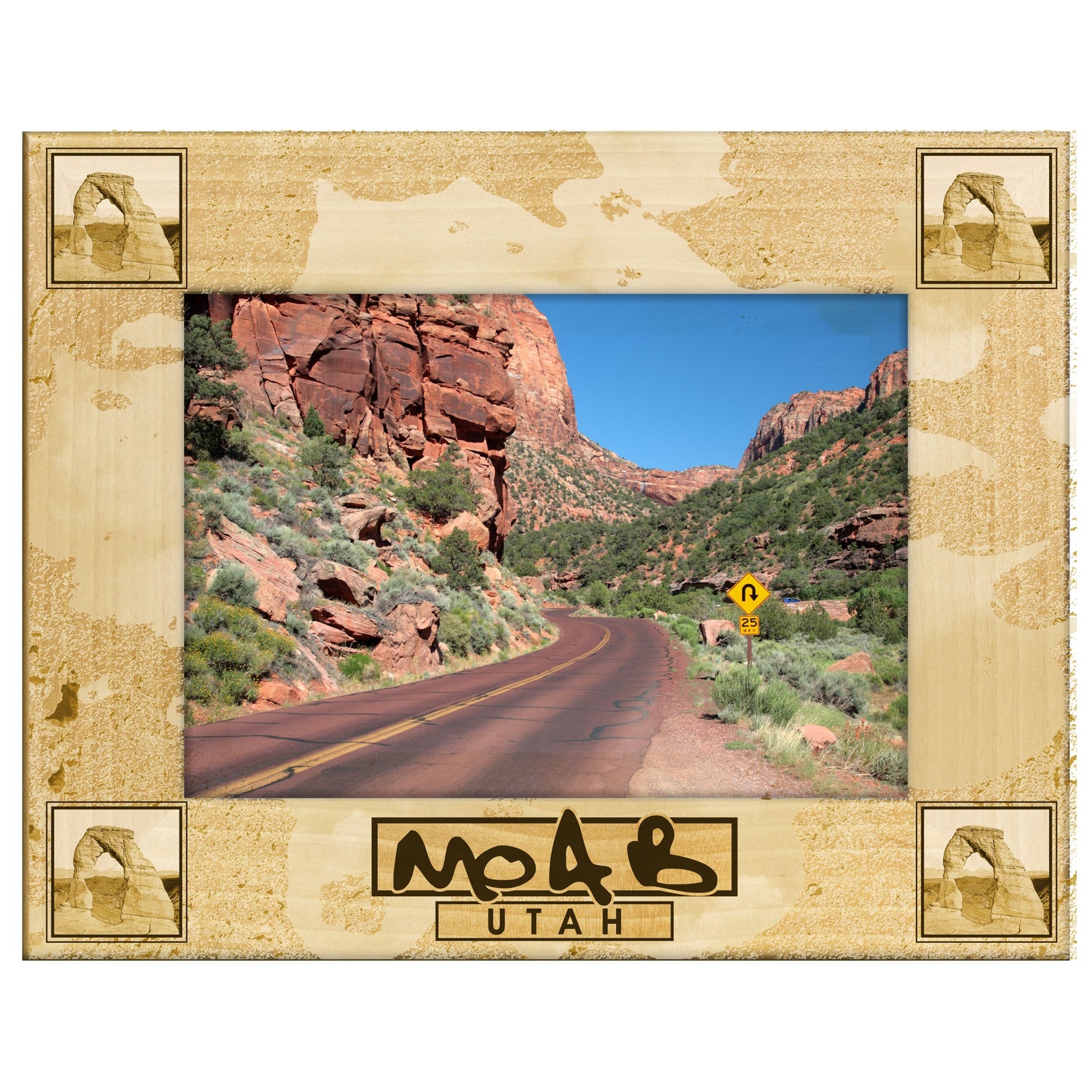 Capture your favorite memories with our Moab Utah Arches Squares engraved wooden picture frame. This frame features a stunning design inspired by the iconic arches of Moab, adding a touch of natural beauty to your home decor.