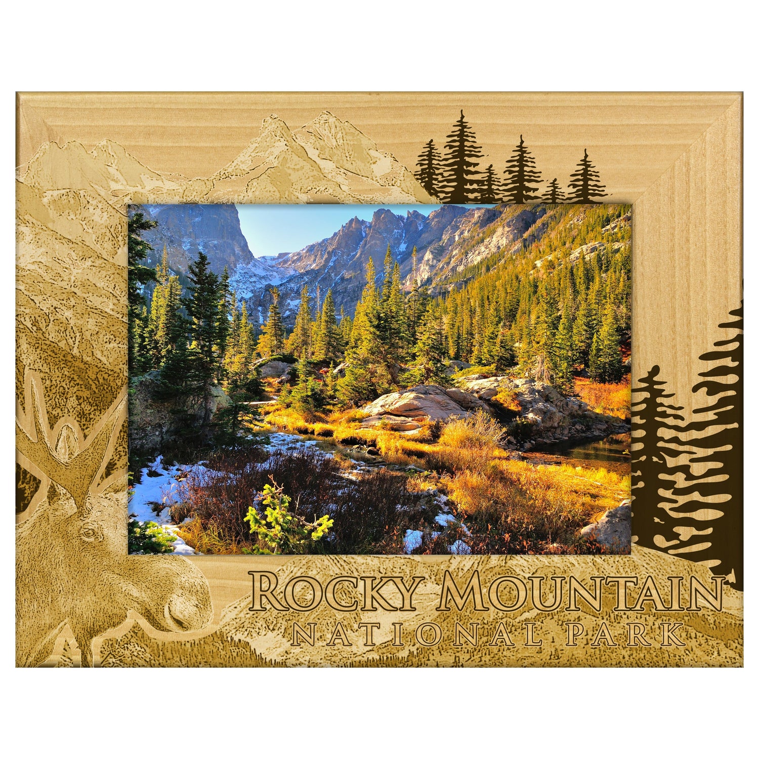 Capture the spirit of the great outdoors with our Rocky Mountain Moose on a Mountain engraved wooden picture frame. This beautifully crafted frame features a stunning moose design, perfect for showcasing your favorite memories from your adventures in nature.