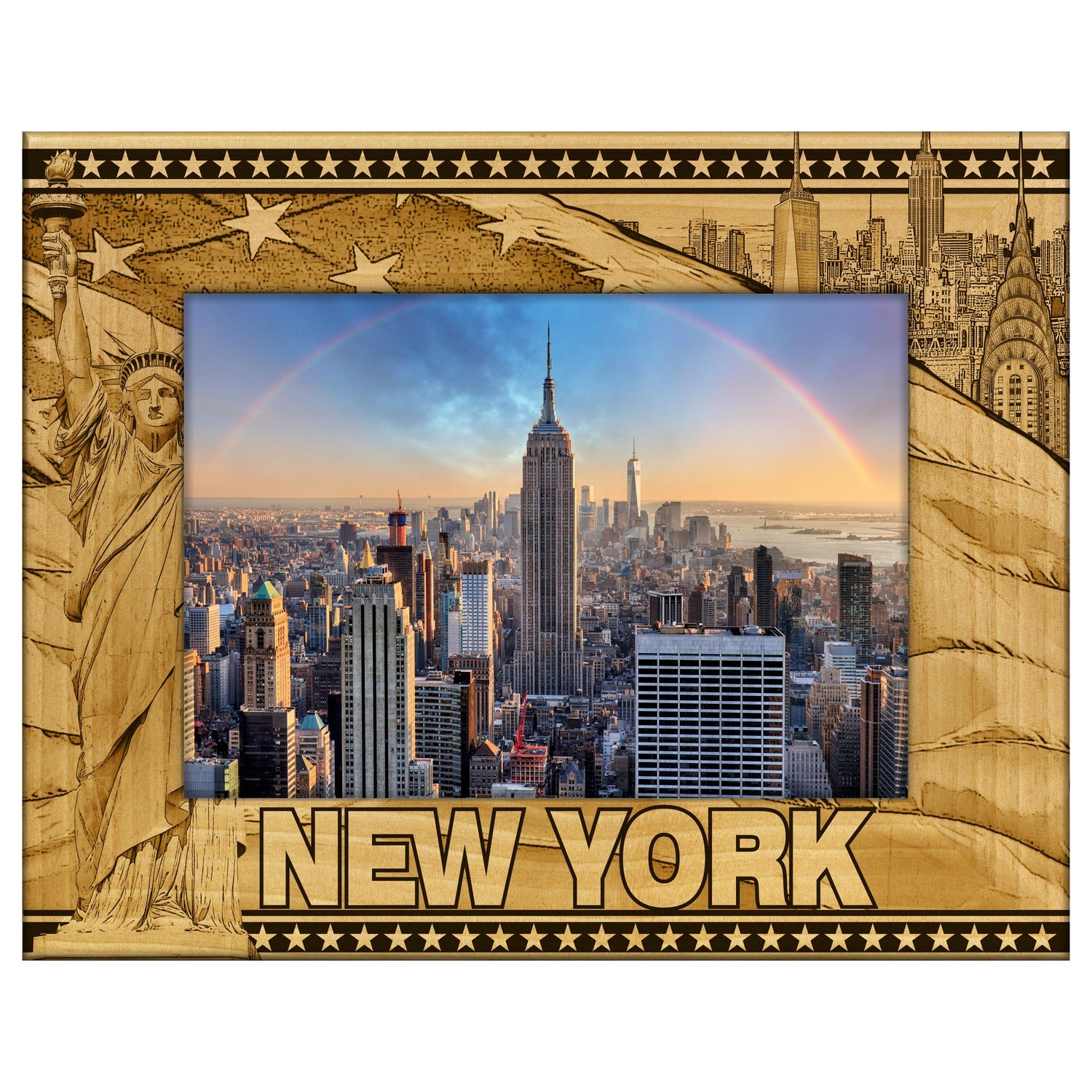 Engraved Alderwood Frame - A-FRM_-1-0683 - New York Liberty Statue Freedom Tower Skyline
