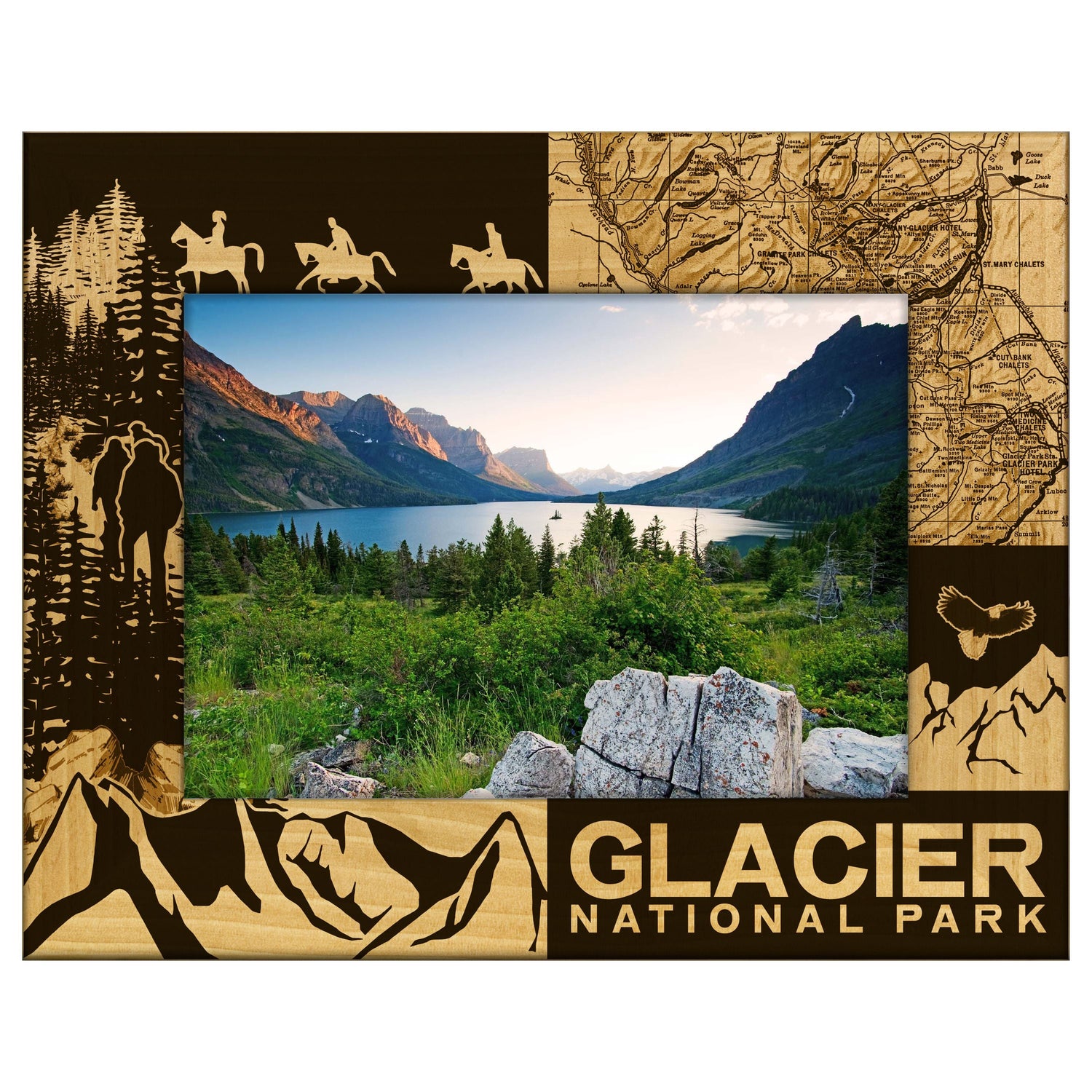 Engraved Alderwood Frame - A-FRM_-1-2200 - Glacier National Park Map Activities Quadrant