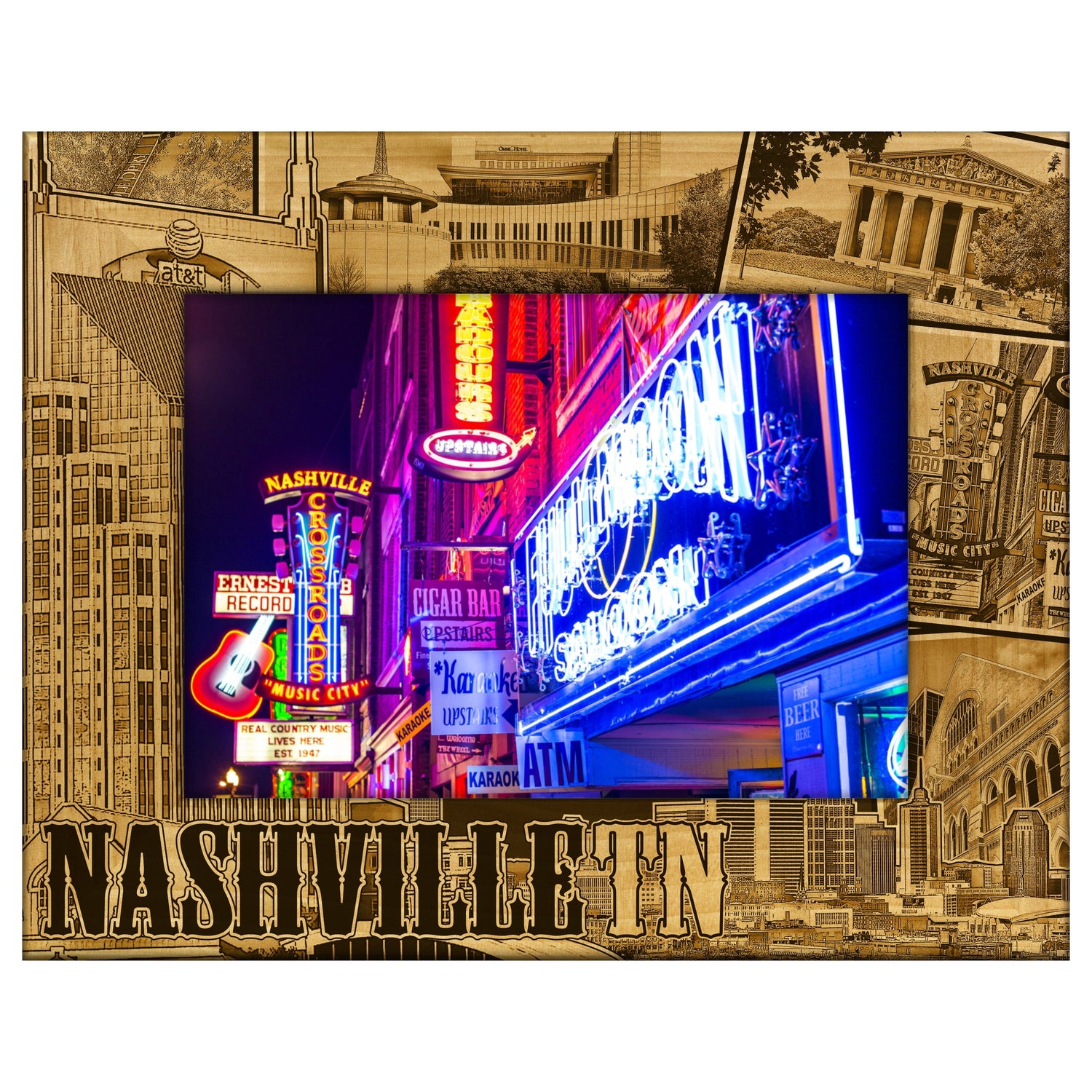 Engraved Alderwood Frame - A-FRM_-1-2492 - Nashville Tennessee Batman Building Destination Photo Collage - 3.5x5 / Horizontal is backordered and will ship as soon as it is back in stock.