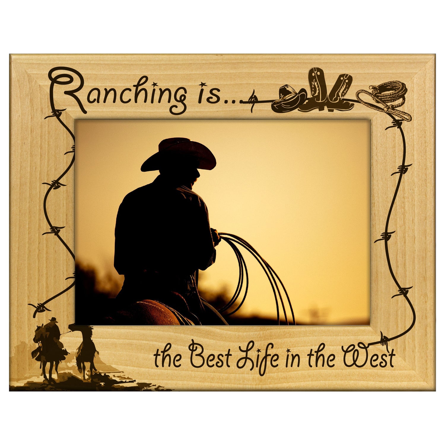 Capture the spirit of the ranching life with our beautifully engraved wooden picture frame. This rustic frame is perfect for showcasing your favorite memories, whether it's a family gathering on the ranch or a stunning sunset over the fields.