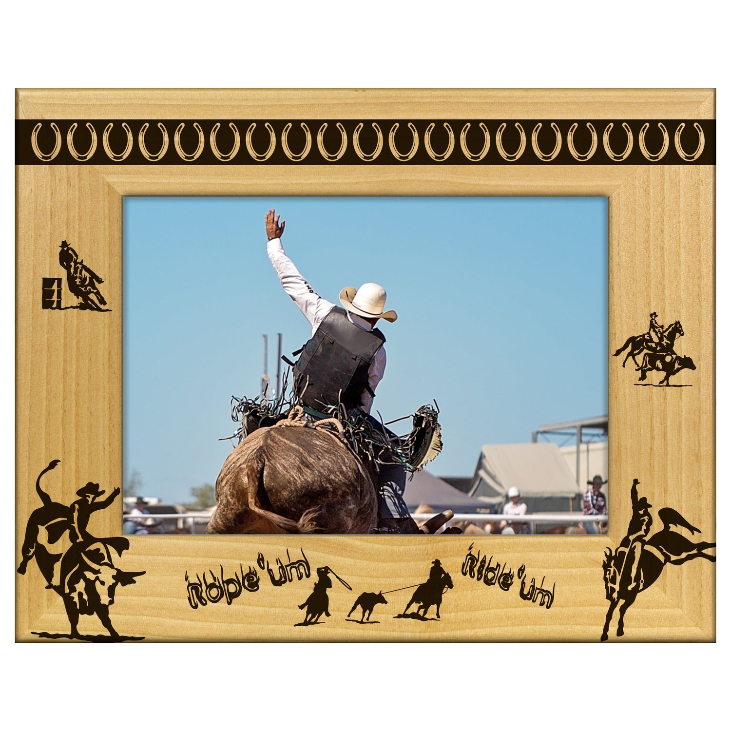 Capture your favorite memories in style with our rodeo engraved wooden picture frame. This frame features intricate rodeo-themed engravings that add a rustic charm to any space.