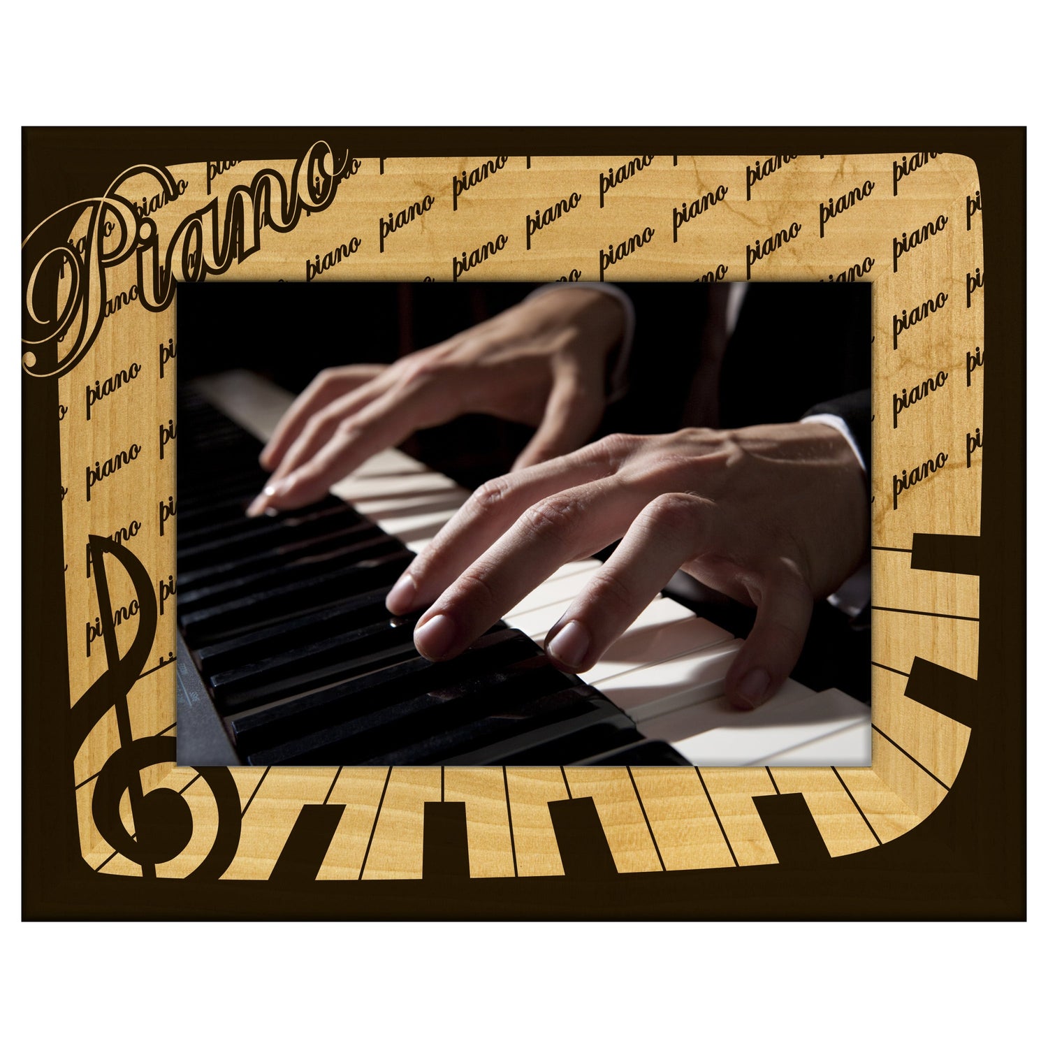 Celebrate your love for music with our piano-themed engraved wooden picture frame. This elegant frame features intricate piano designs that beautifully showcase your favorite memories.