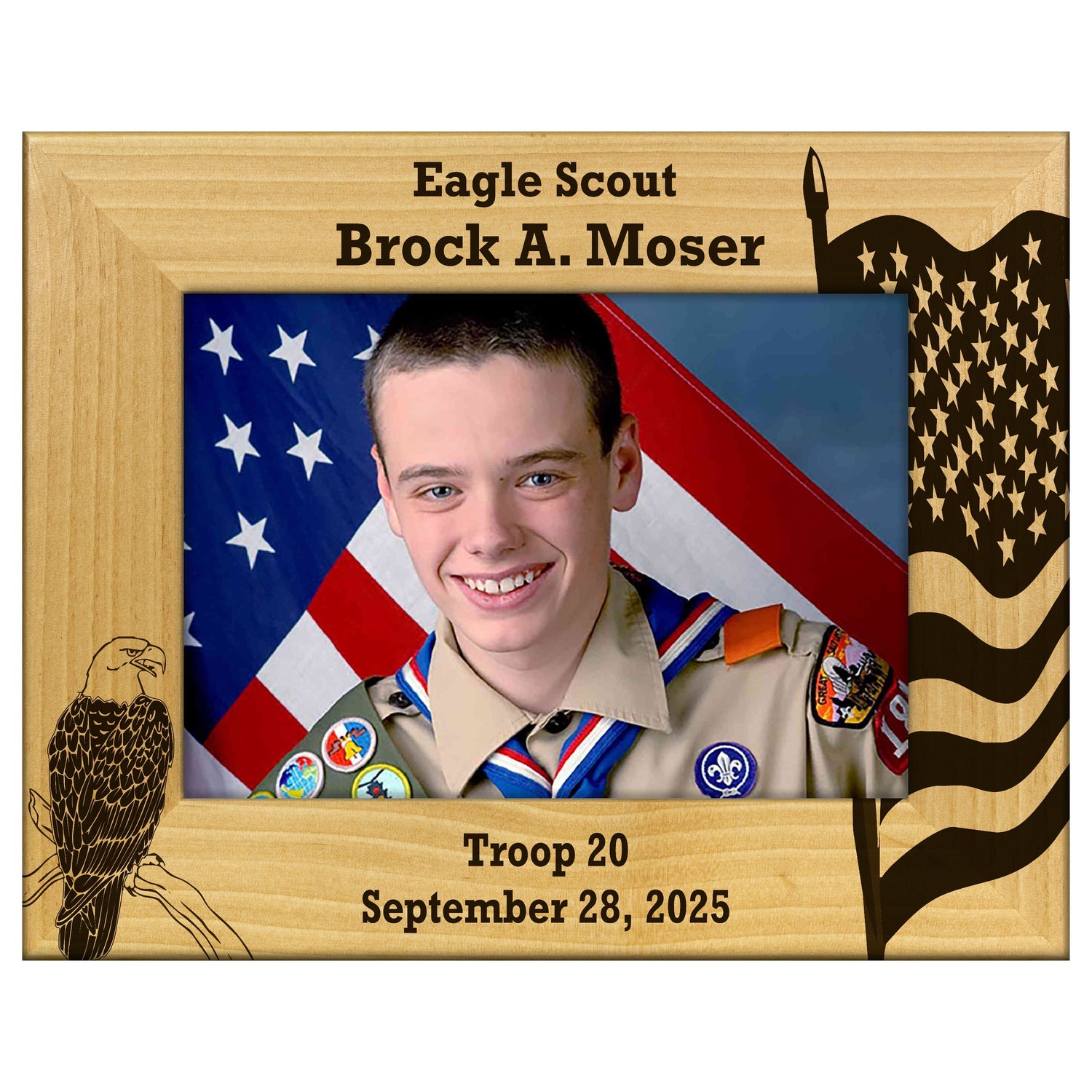 Celebrate a remarkable achievement with our Eagle Scout Engraved Wooden Picture Frame. This frame features a beautifully engraved design that honors the dedication and hard work of an Eagle Scout.