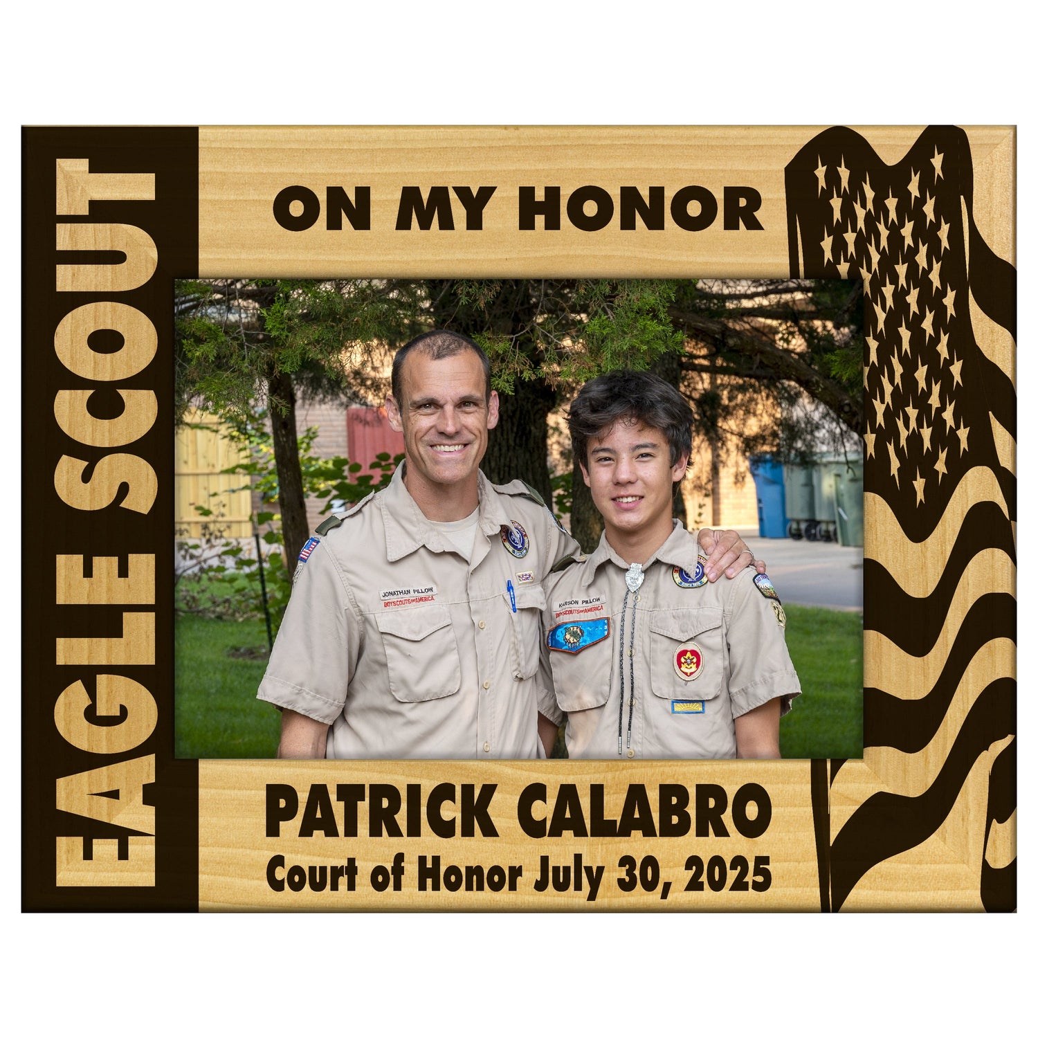 Capture your cherished memories with the Scout On My Honor Engraved Wooden Picture Frame. This frame features a heartfelt engraving that adds a personal touch to any space.