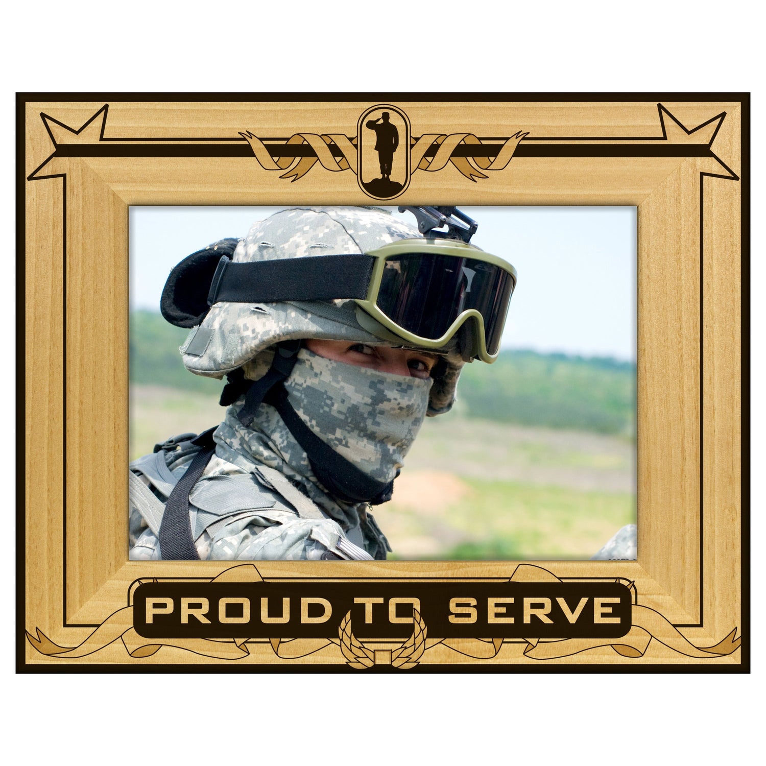 Celebrate the bravery and dedication of our heroes with this stunning US military-themed engraved wooden picture frame. It features intricate engravings that honor the spirit of service, making it the perfect way to showcase cherished memories.