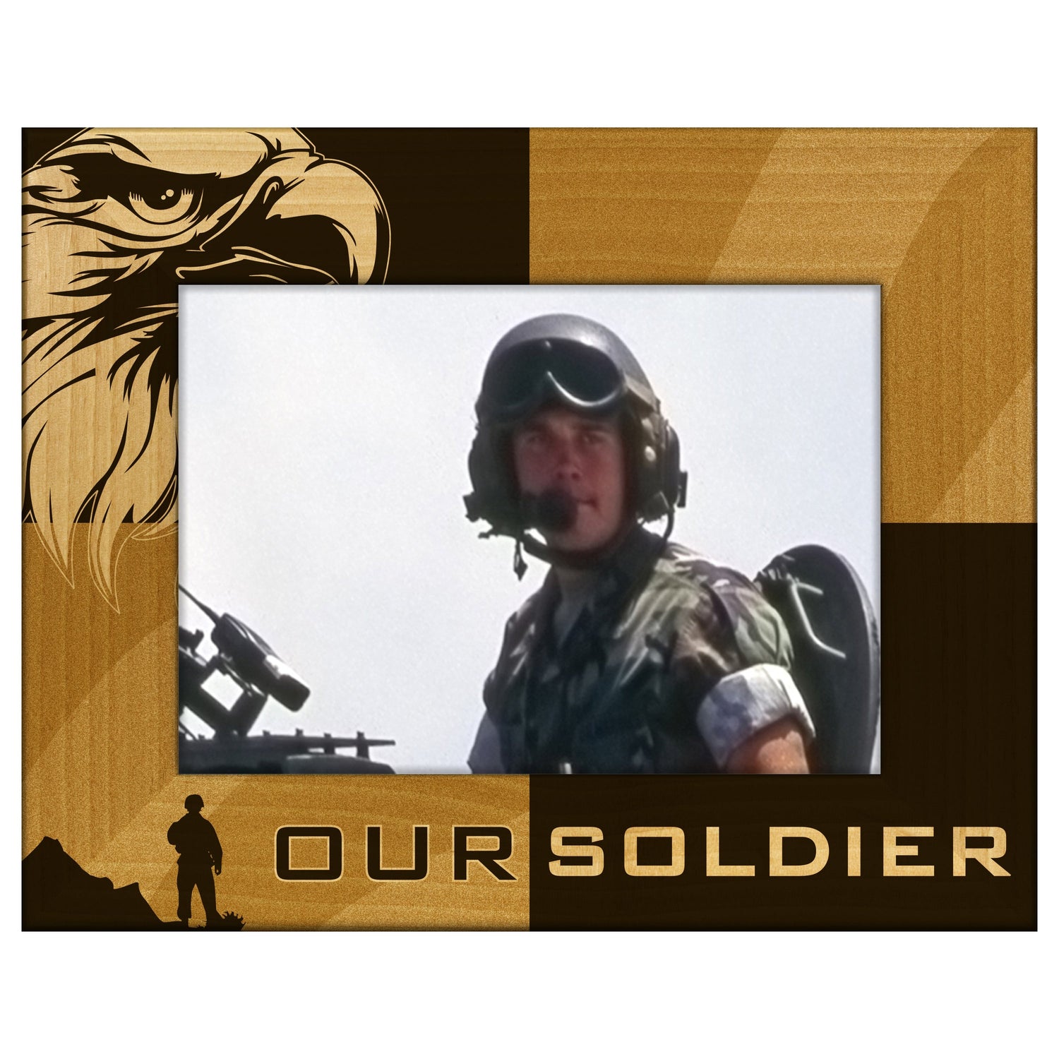 Celebrate the bravery and dedication of our soldiers with our US military-themed engraved wooden picture frame. This frame features intricate engravings that honor the spirit of service, making it a perfect gift for veterans or active-duty members.