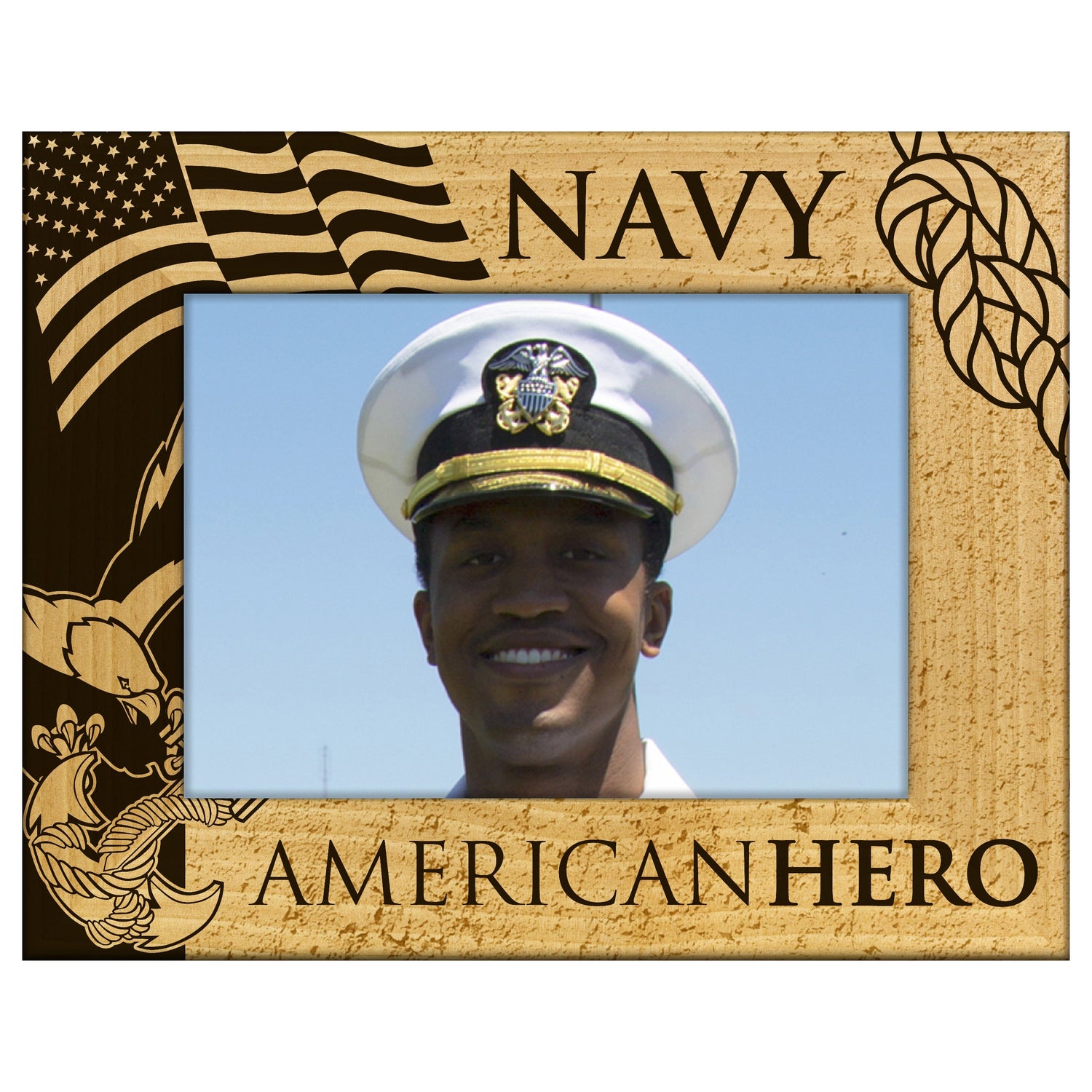 Celebrate your American hero with our Navy American Hero Engraved Wooden Picture Frame. This frame features a stunning navy finish and a heartfelt engraving that honors their bravery and dedication.