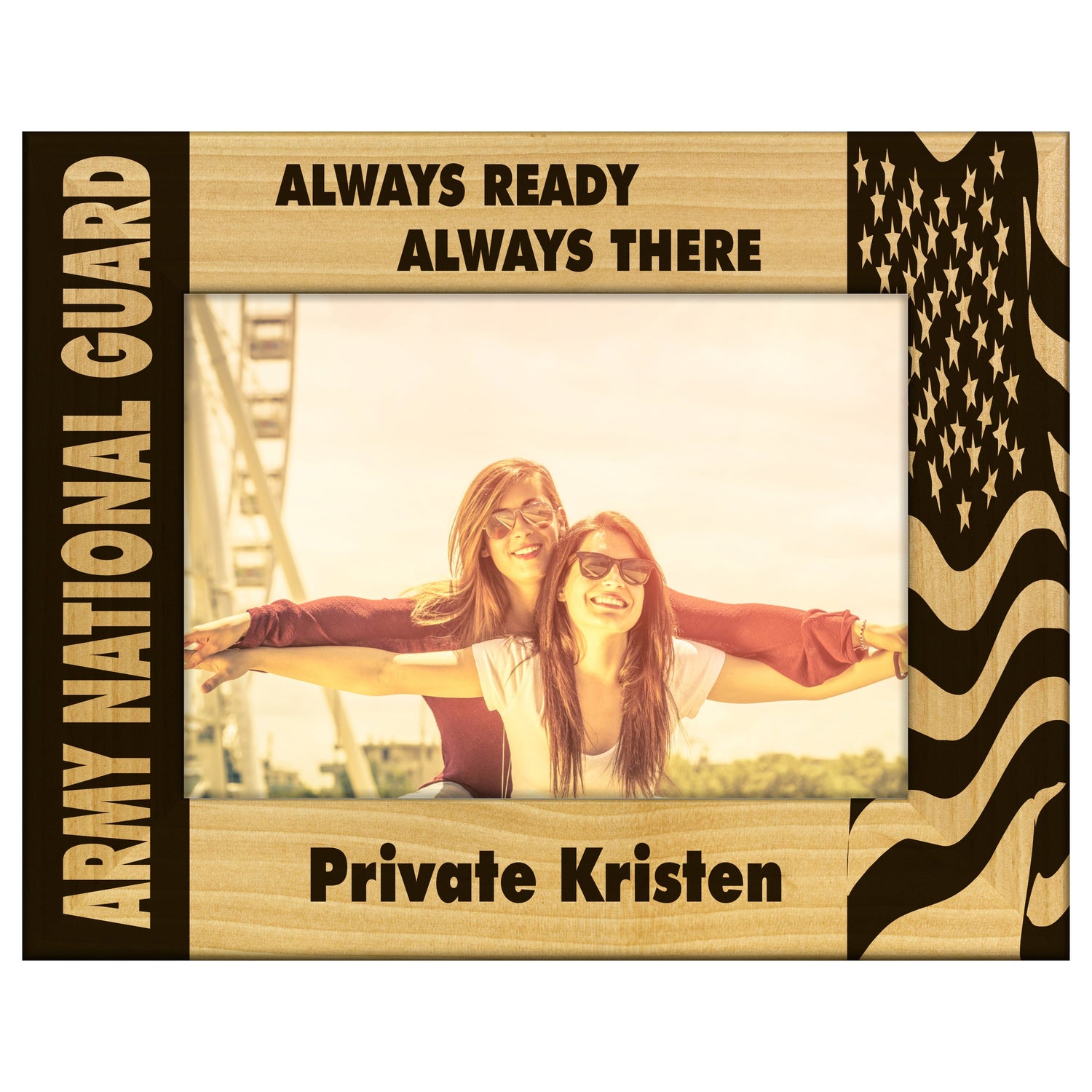 Celebrate your pride and honor with our Army National Guard Themed Engraved Wooden Picture Frame. This frame features a beautifully engraved design that pays tribute to the brave men and women of the National Guard.