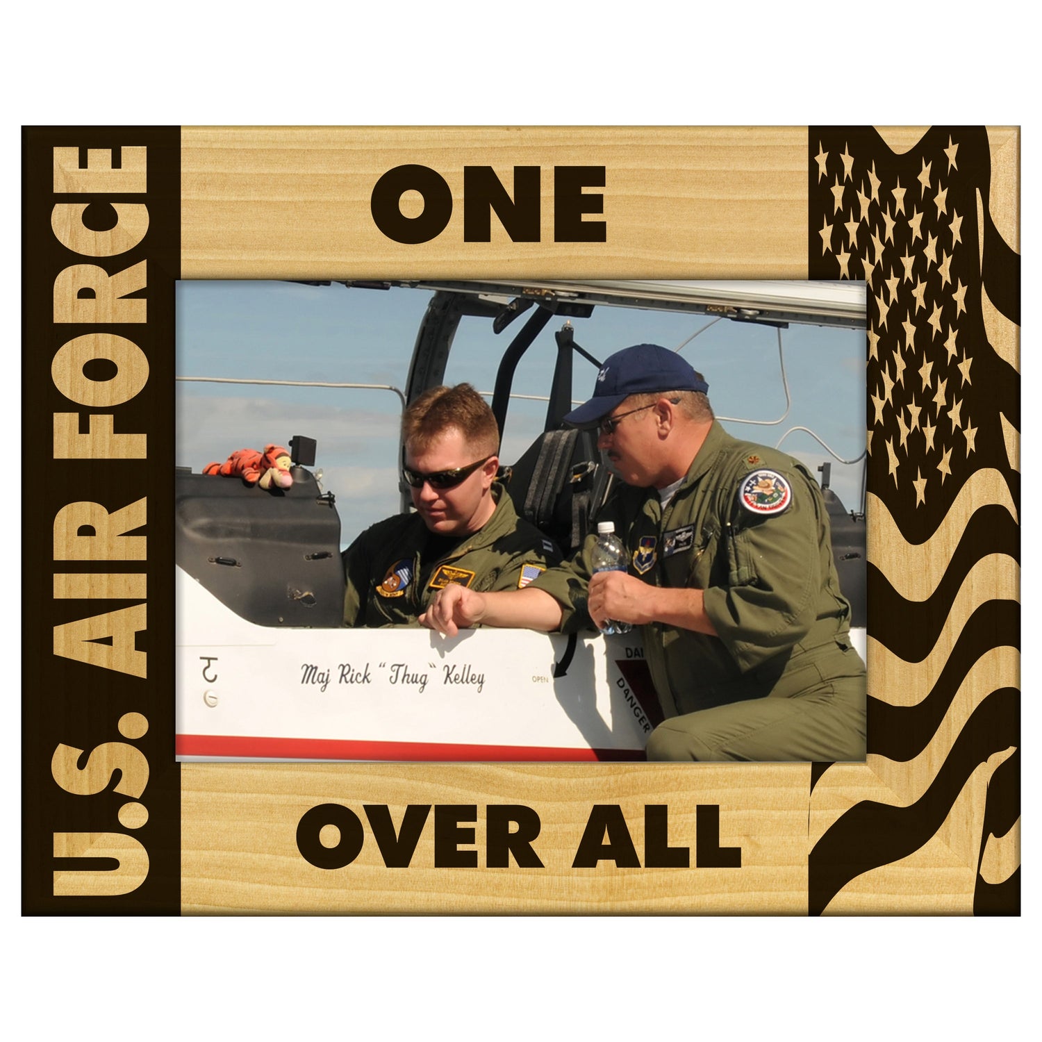 Showcase your pride with our US Air Force themed engraved wooden picture frame. This frame features a stunning design that honors the bravery and dedication of our troops.