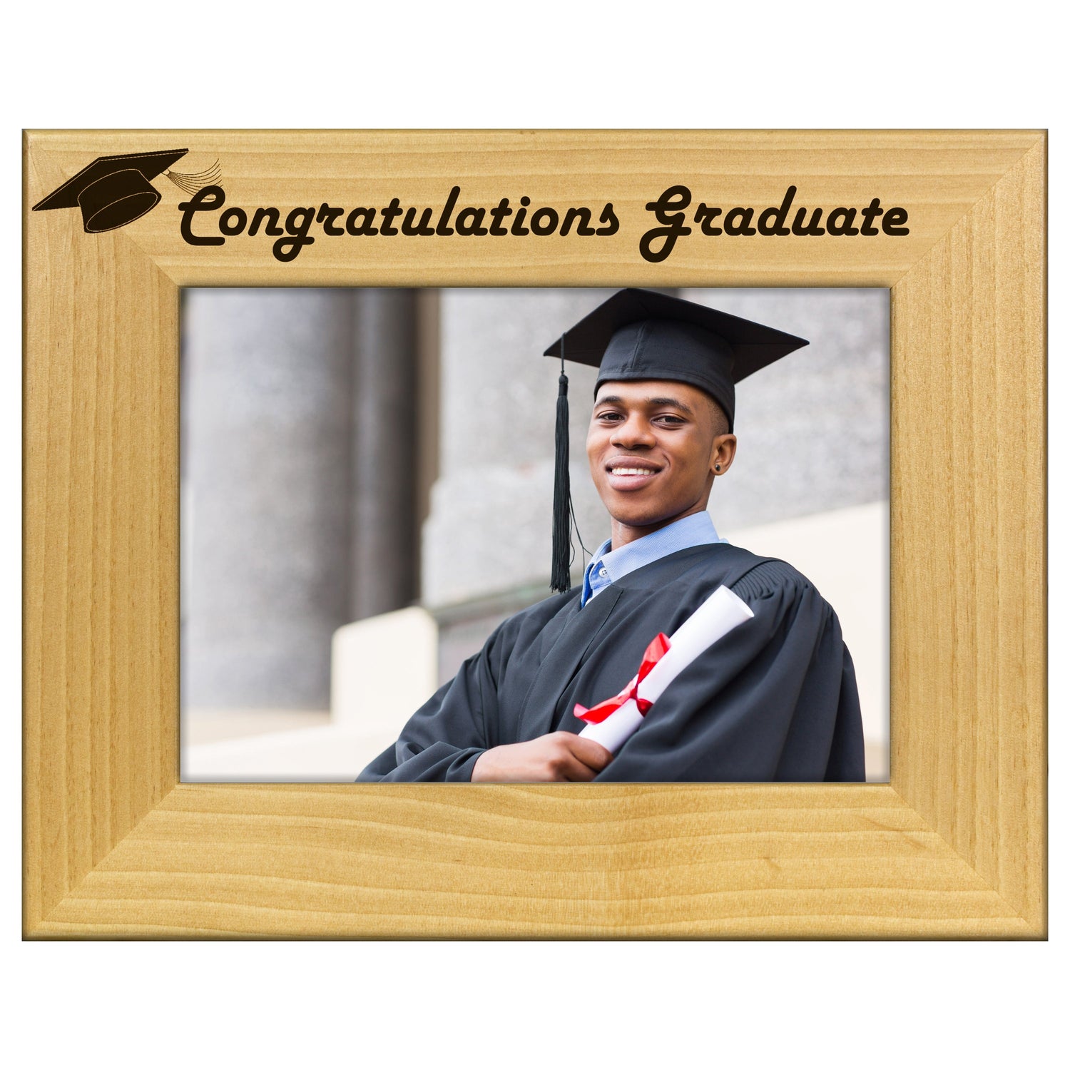 Celebrate your achievement with our Congratulations Graduate Engraved Wooden Picture Frame. This beautifully crafted frame is perfect for showcasing your favorite graduation photo, featuring a heartfelt engraving that captures the essence of your accomplishment.