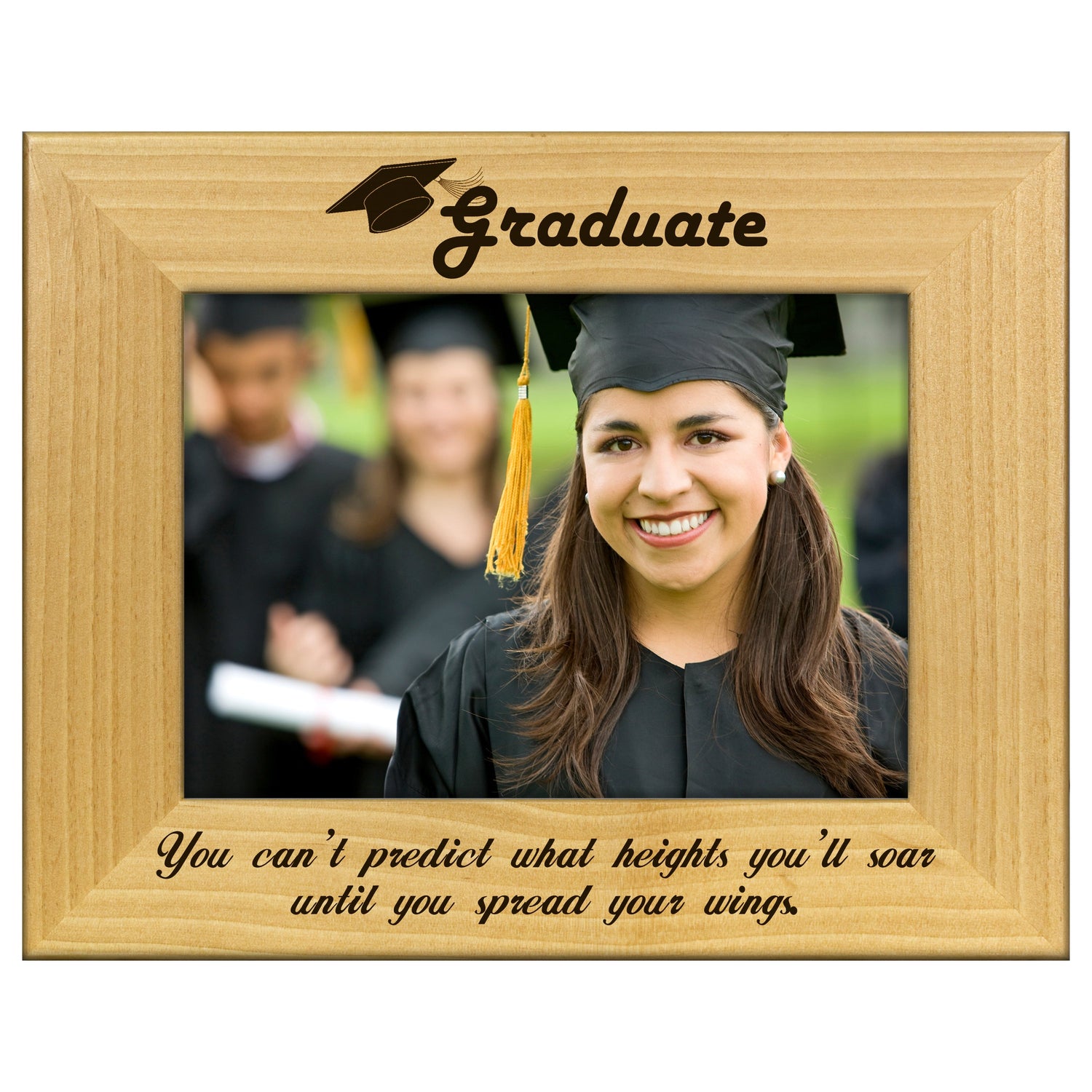 Celebrate your graduate's achievement with our beautifully engraved wooden picture frame.This frame features a personalized engraving that adds a special touch to any photo. Perfect for displaying cherished memories from graduation day, it makes a thoughtful gift for friends or family members.