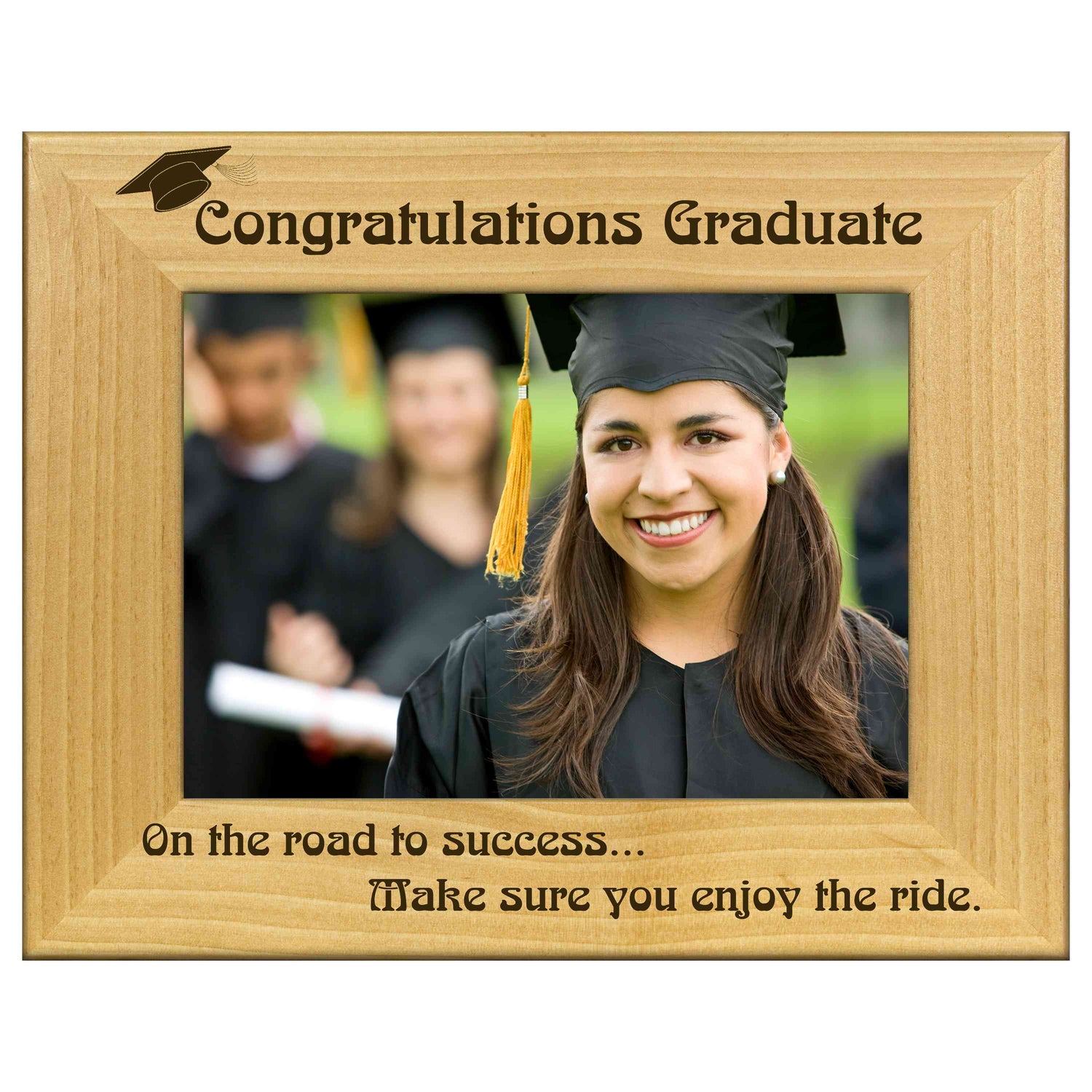 Celebrate your achievement with our Congratulations Graduate engraved wooden picture frame. This beautifully crafted frame is perfect for showcasing your favorite graduation photo, making it a timeless keepsake.
