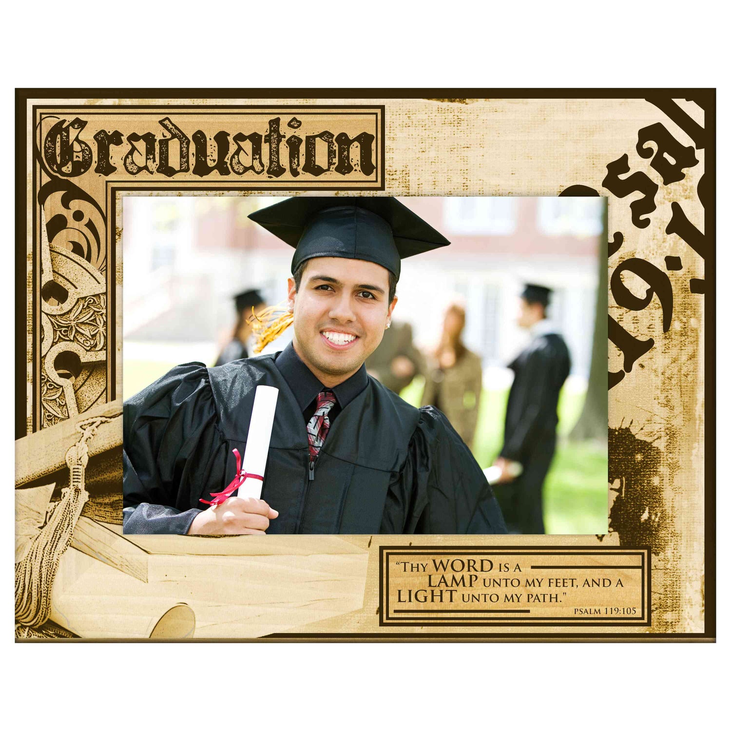 Celebrate your graduate's achievement with our beautifully engraved wooden picture frame, designed to showcase their favorite graduation photo. This unique frame features an inspiring scripture that adds a personal touch, making it a perfect keepsake for years to come.