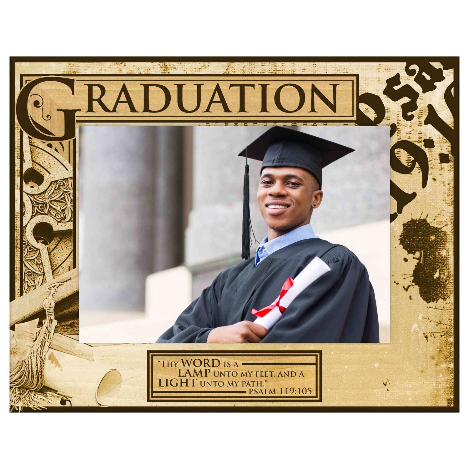Celebrate your graduate's achievement with our beautifully engraved wooden picture frame, designed to showcase their favorite graduation photo. This unique frame features an inspiring scripture that adds a personal touch, making it a perfect keepsake for years to come.