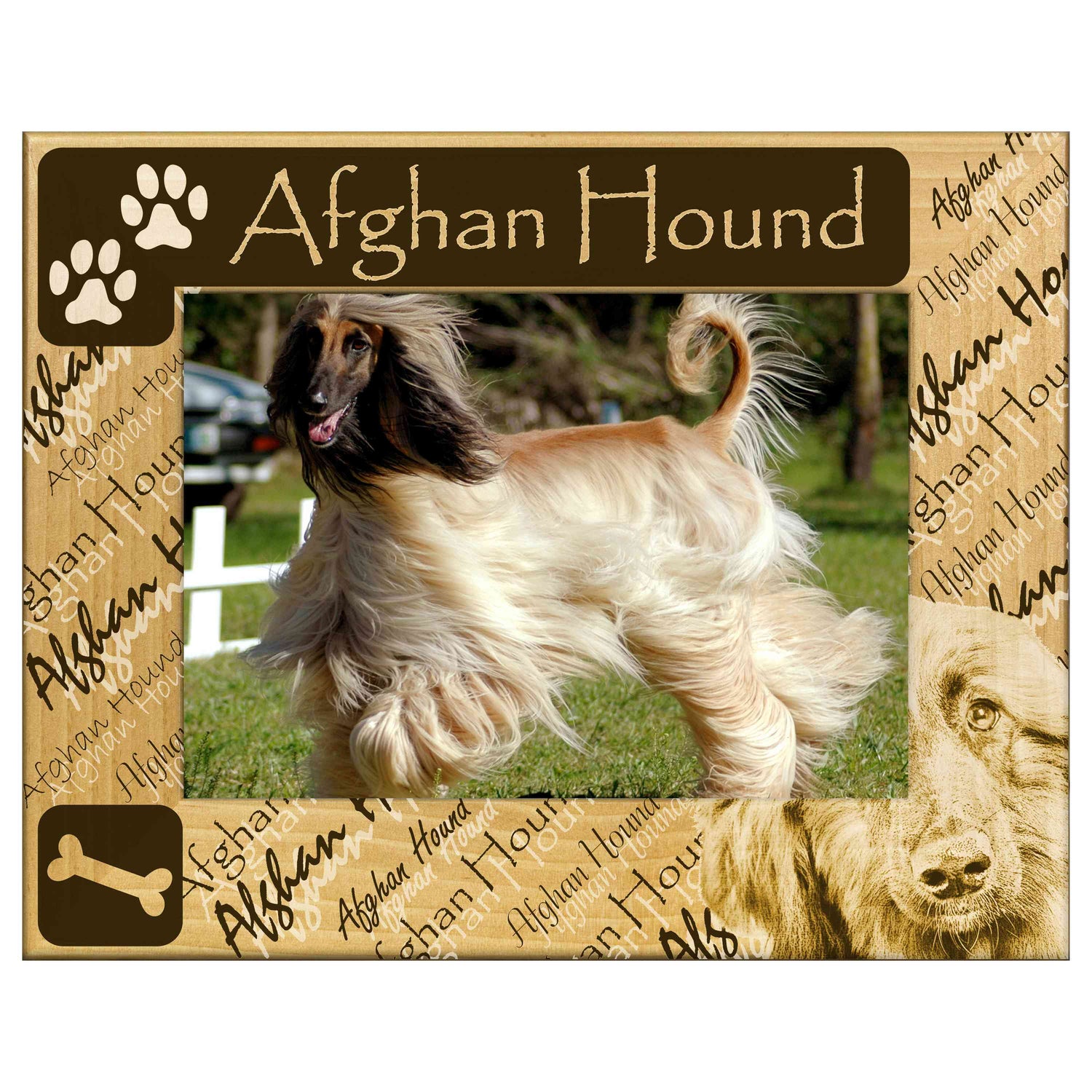 Showcase your love for the elegant Afghan Hound with this beautifully engraved wooden picture frame. It features intricate designs that celebrate the grace and charm of this beloved breed.