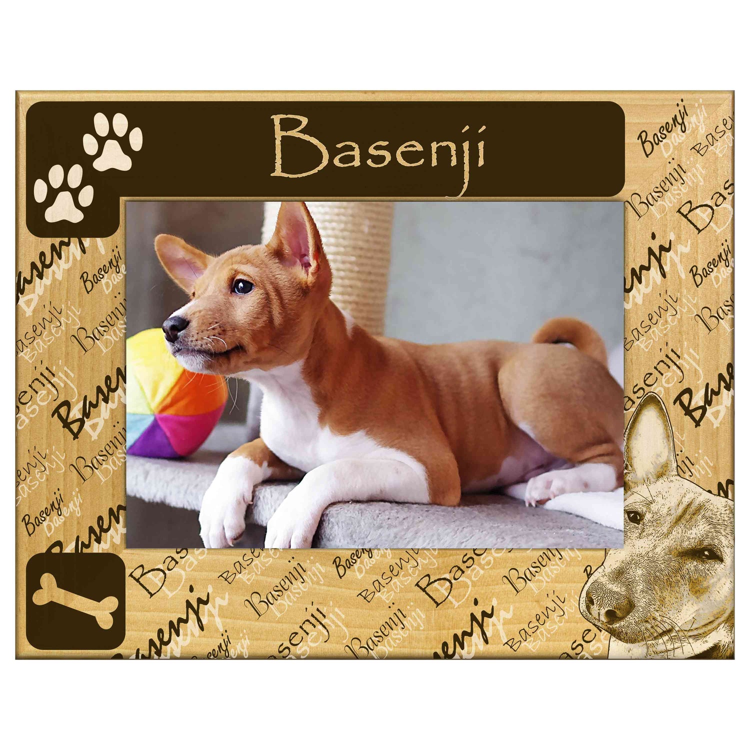 Celebrate your love for Basenjis with our beautifully engraved wooden picture frame. This frame features a charming design that showcases your favorite memories with your furry friend.