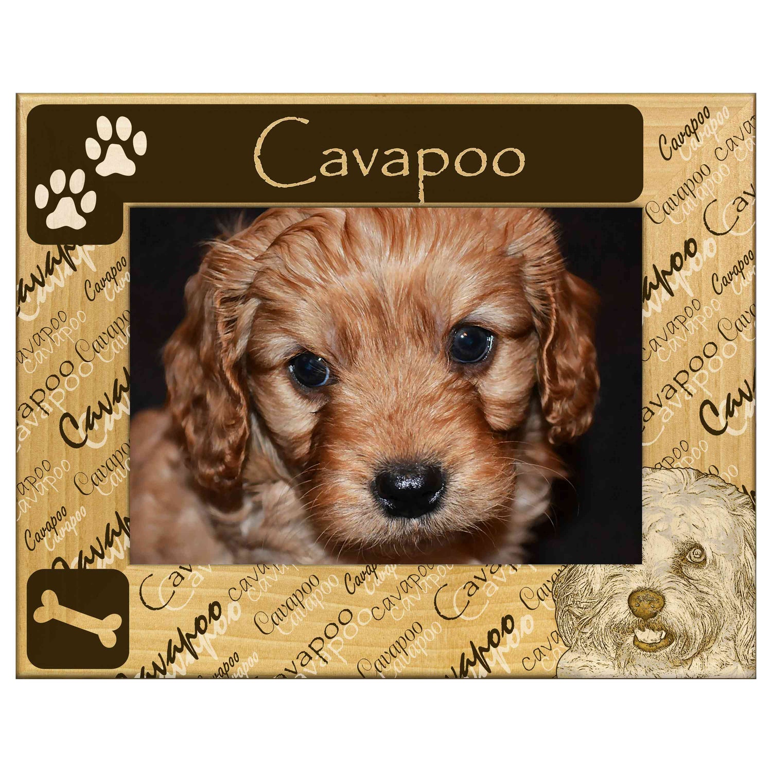 Celebrate your love for your Cavapoo with our beautifully engraved wooden picture frame. This frame adds a warm, rustic touch to any space while showcasing your favorite memories with your furry friend.