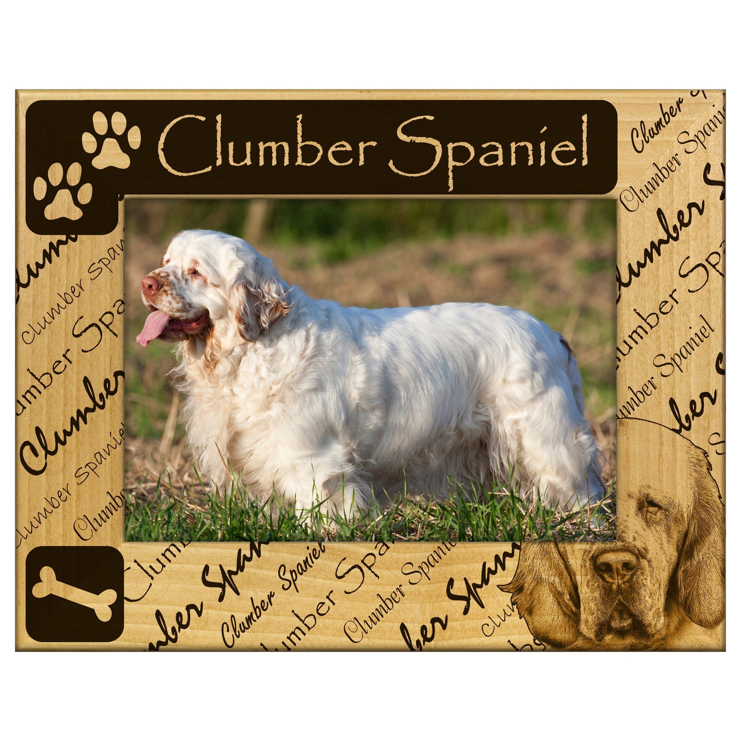 Celebrate your love for Clumber Spaniels with our beautifully engraved wooden picture frame. This frame features a charming Clumber Spaniel design that adds a personal touch to any space.