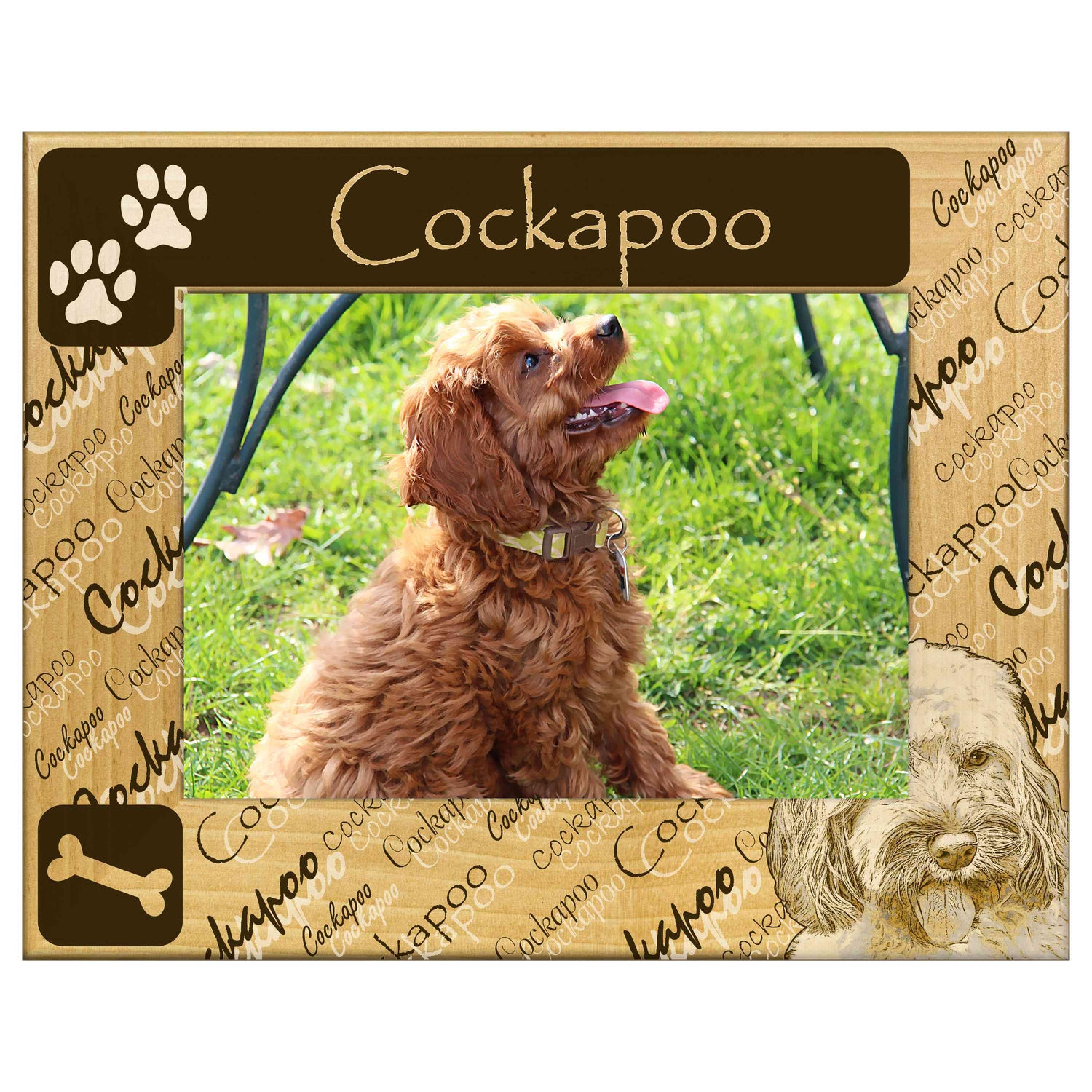 Celebrate your love for your Cockapoo with this charming engraved wooden picture frame. This frame features a beautiful design that showcases your favorite memories with your furry friend.