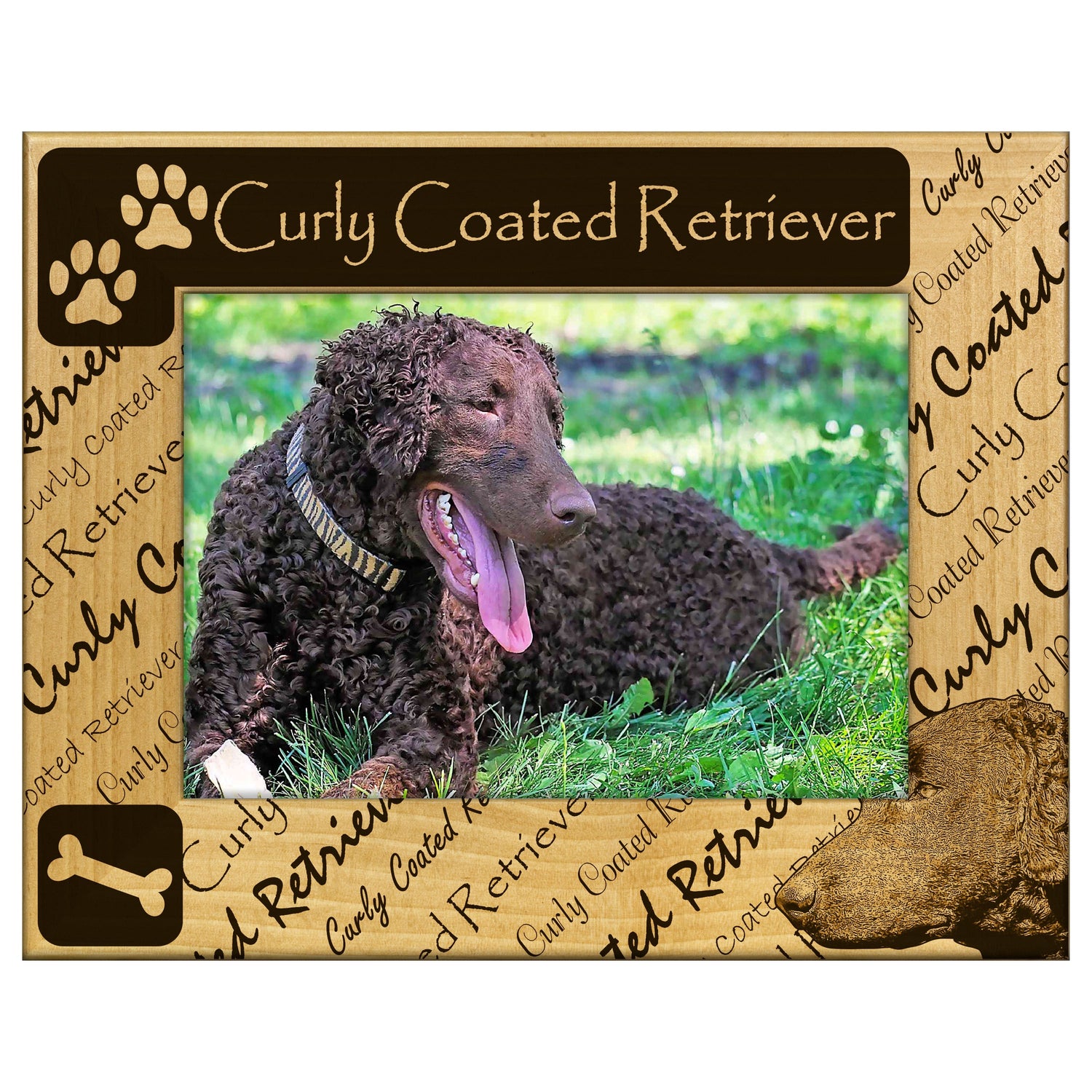 Showcase your love for the Curly Coated Retriever with this beautifully engraved wooden picture frame. It features a stunning design that highlights the unique charm of this beloved breed.