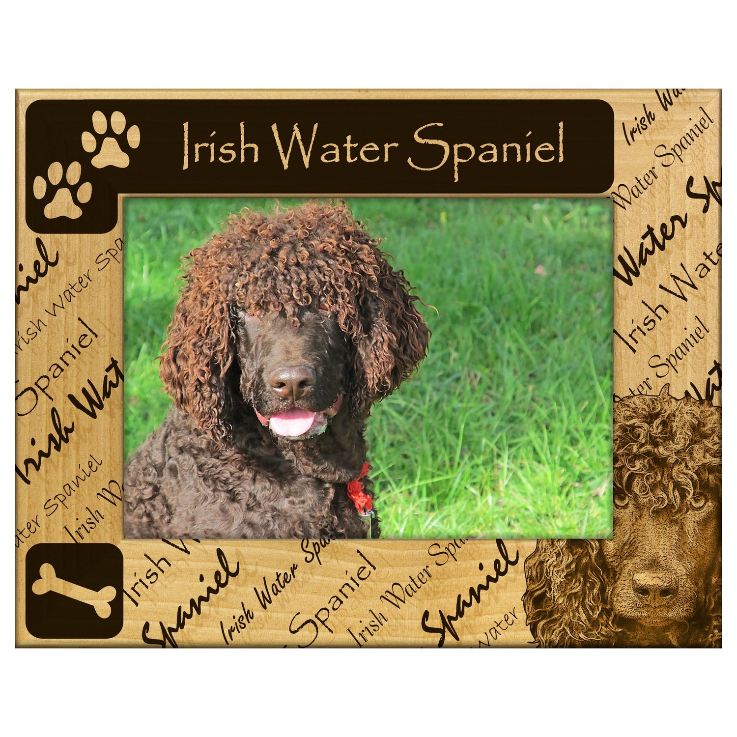 Celebrate your love for the Irish Water Spaniel with this beautifully engraved wooden picture frame, perfect for showcasing your favorite memories. It features intricate detailing that highlights the unique charm of this beloved breed.