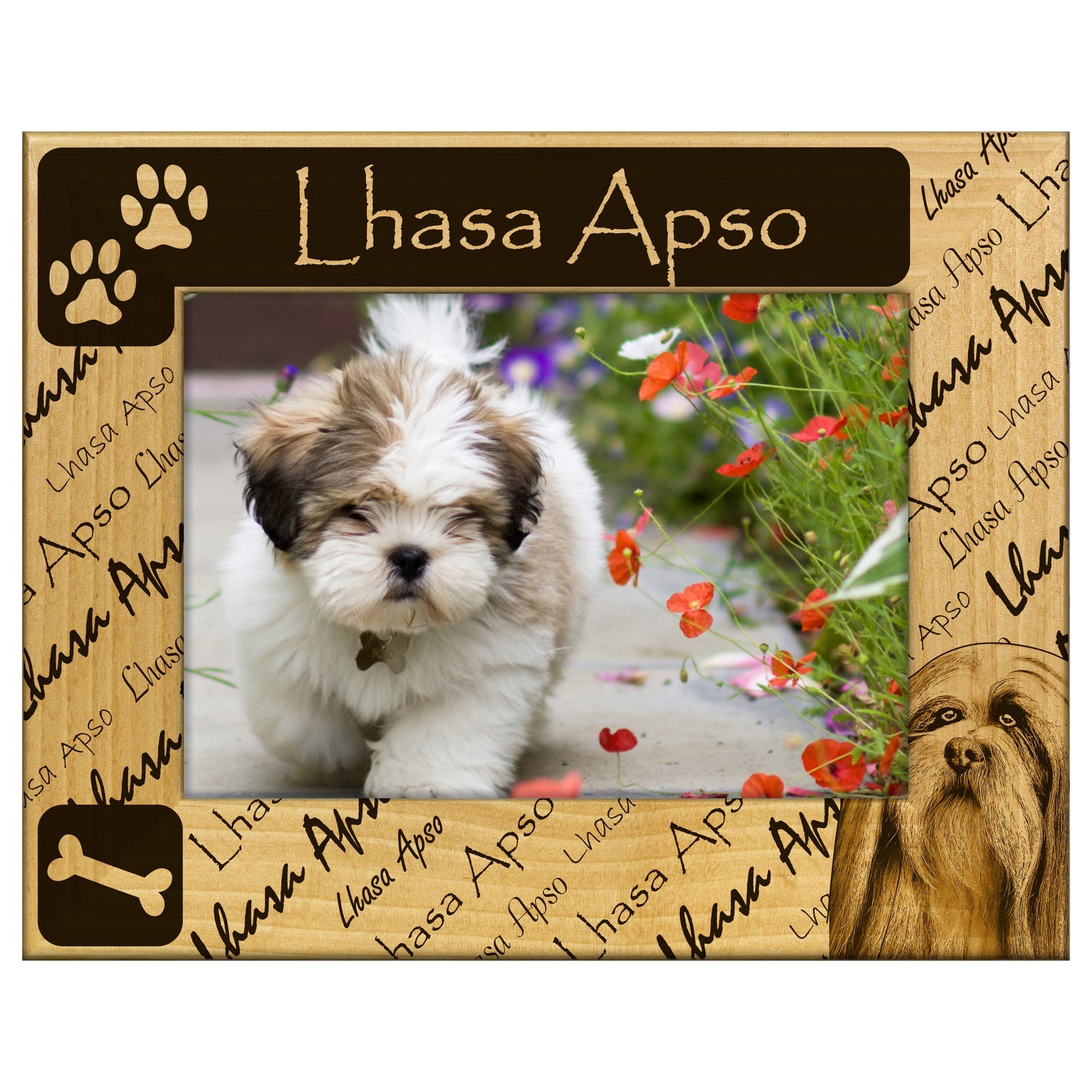 Capture the essence of your beloved Lhasa Apso with our beautifully engraved wooden picture frame. This frame features a charming design that perfectly complements any home decor.