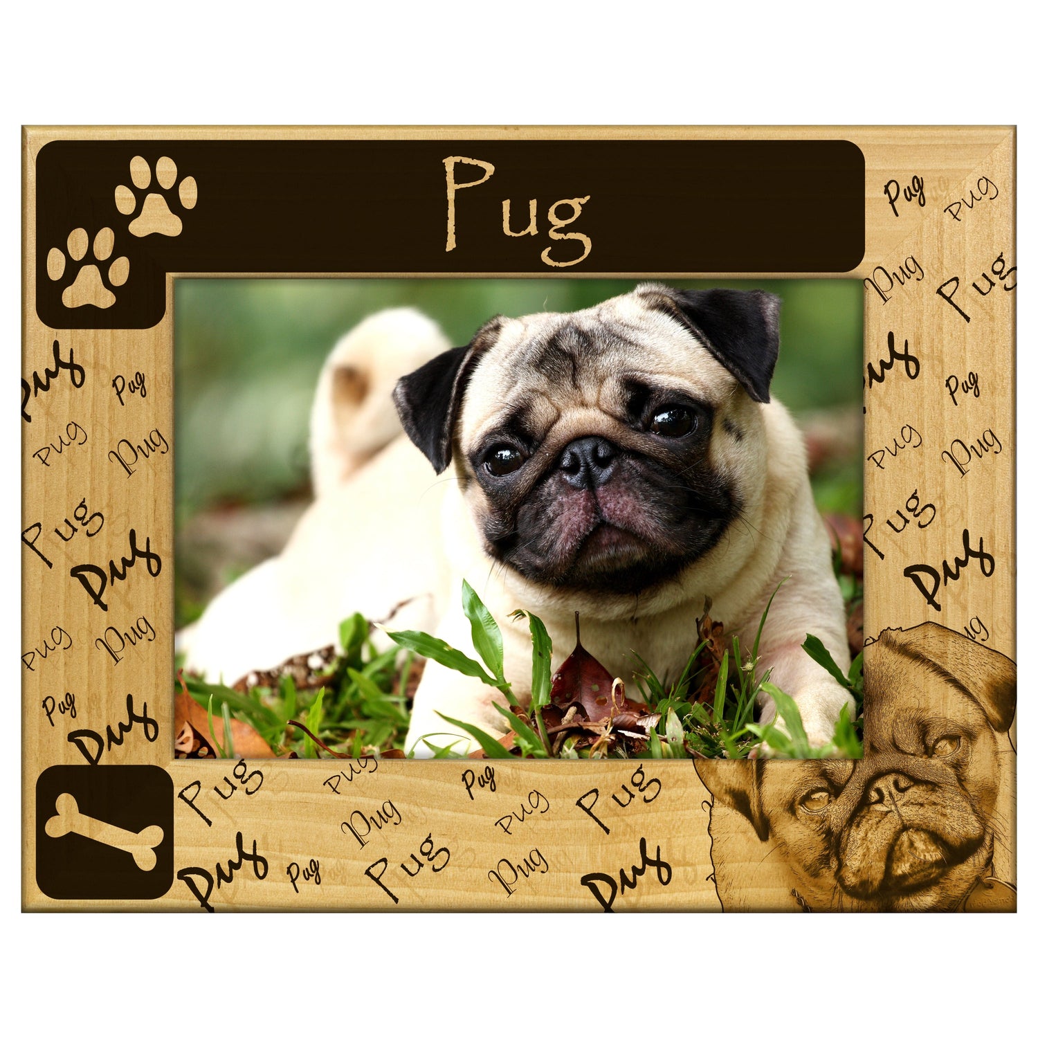 Capture your favorite moments with our charming Pug Engraved Wooden Picture Frame. This delightful frame features a beautifully detailed pug design, making it the perfect addition to any dog lover's home.