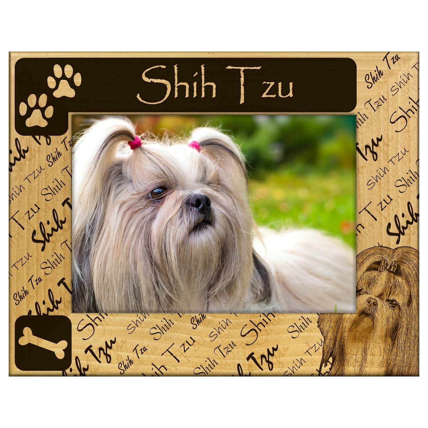 Celebrate your love for Shih Tzus with our beautifully engraved wooden picture frame. This charming frame not only showcases your favorite pet photos, but also adds a touch of warmth and personality to any room.