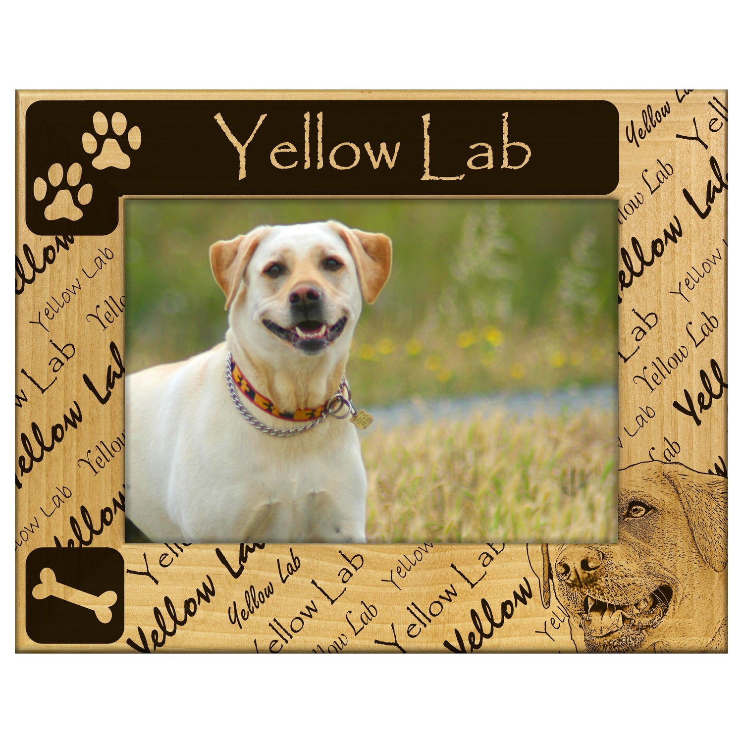 Capture your cherished memories with our Yellow Lab Engraved Wooden Picture Frame. This beautifully crafted frame features a delightful engraving of a playful yellow lab, making it the perfect addition to any dog lover's home.