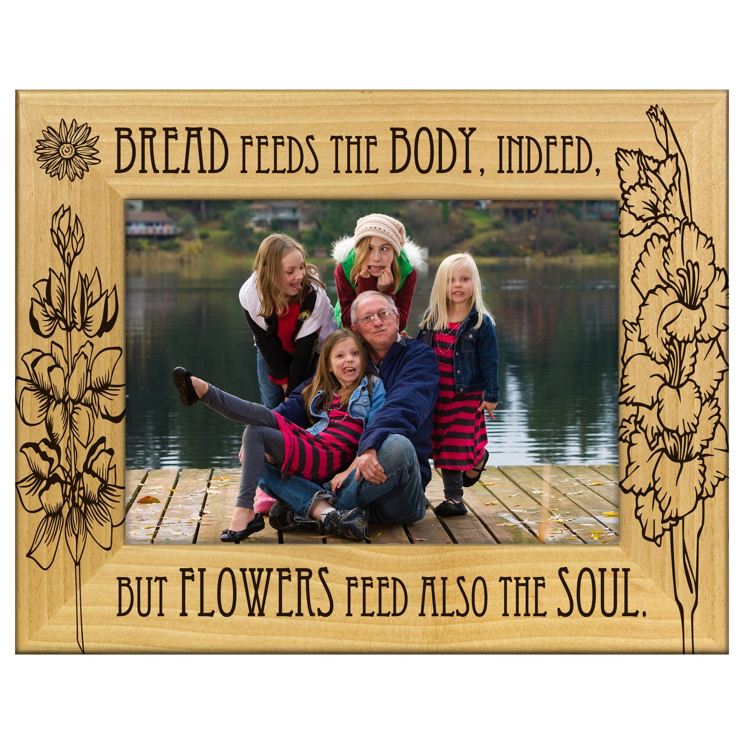 Capture the beauty of cherished moments with our Flowers Feed the Soul engraved wooden picture frame. This frame not only showcases your favorite photos but also adds a touch of warmth and inspiration to any space.