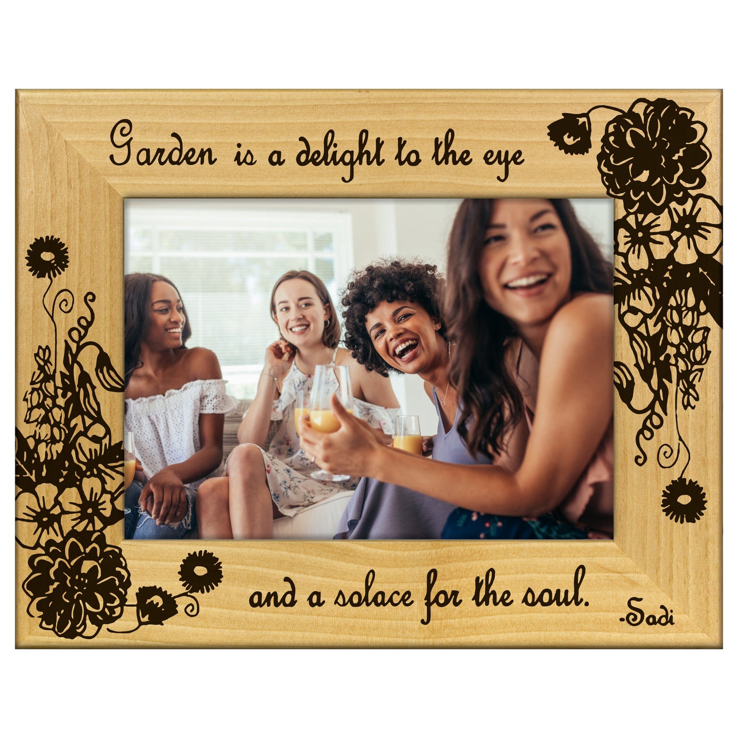 Transform your cherished memories into timeless treasures with our Garden is a Solace for the Soul engraved wooden picture frame. This frame not only showcases your favorite photos but also adds a touch of nature-inspired elegance to any space.