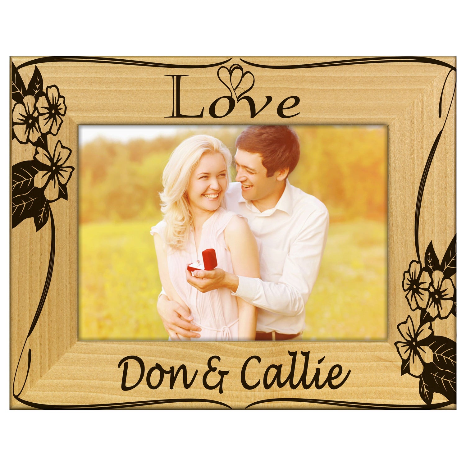 Celebrate your love with our beautifully crafted wooden picture frame, adorned with delicate floral engravings that add a touch of elegance to any space. Perfect for showcasing your favorite memories, this charming frame not only highlights your cherished moments but also serves as a stunning decorative piece.