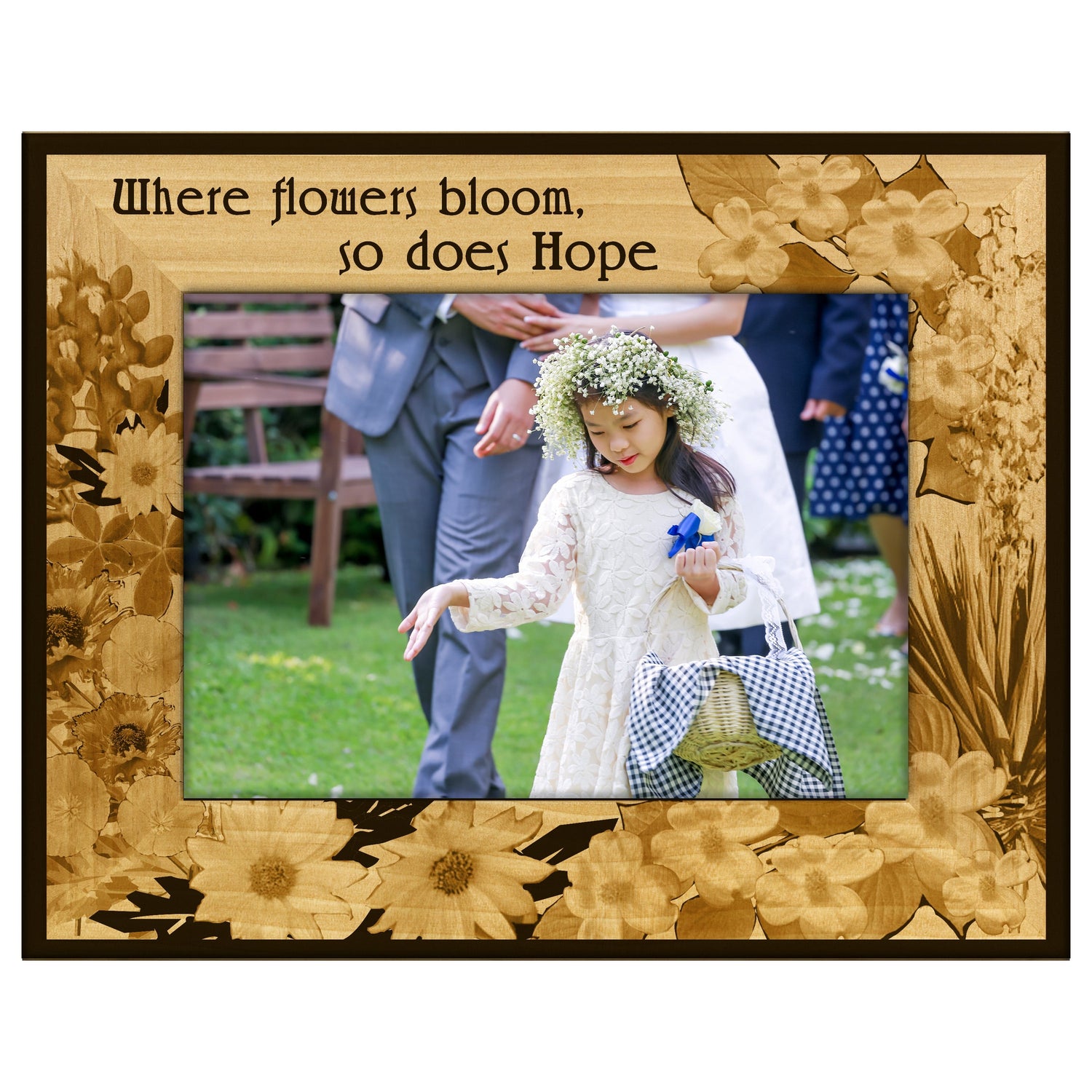 Capture your cherished memories in style with our Where Flowers Bloom engraved wooden picture frame. This frame features a beautiful floral design that adds a touch of nature to your home decor.
