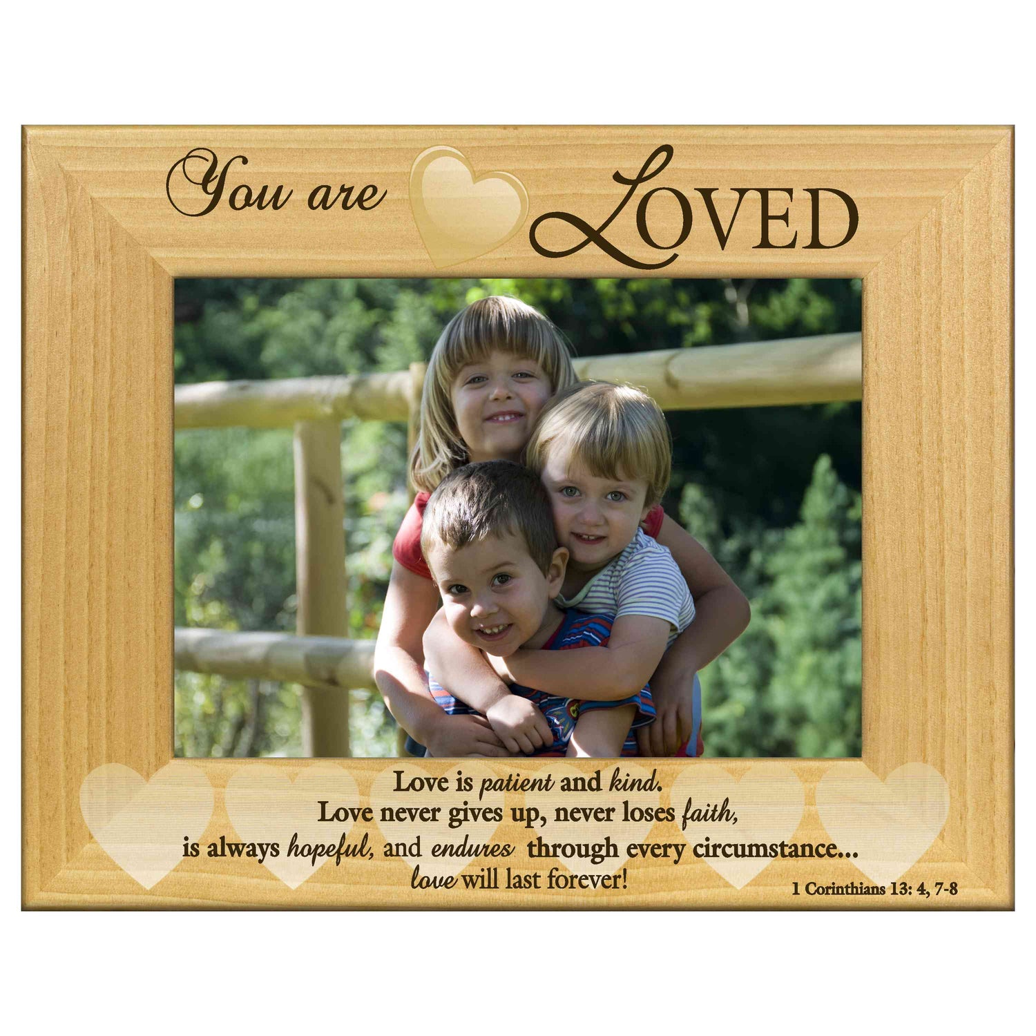 Celebrate the special moments in life with our You Are Loved engraved wooden picture frame. This frame adds a warm, rustic touch to any space while beautifully showcasing your cherished memories.
