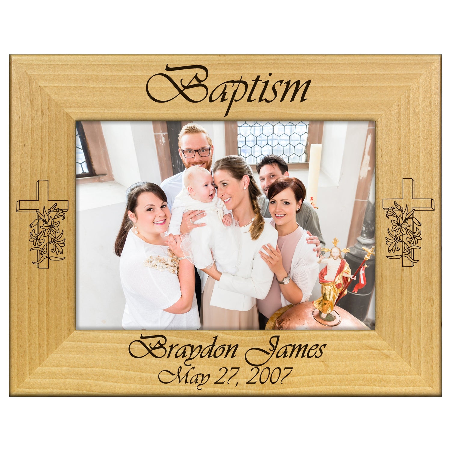 Capture the precious moments of your child's baptism with our beautifully engraved wooden picture frame. This frame features a charming design that adds a personal touch to any decor.