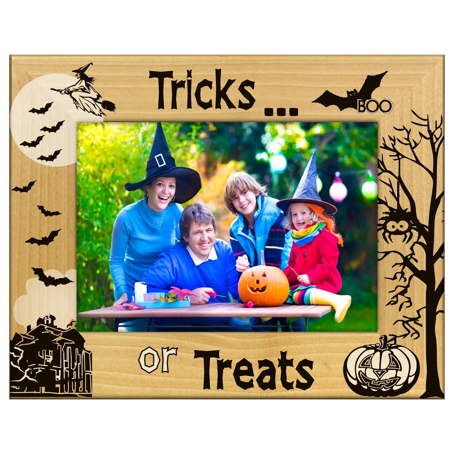 Capture the spirit of Halloween with our Tricks or Treats engraved wooden picture frame. This charming frame adds a festive touch to your home decor, perfect for showcasing your favorite spooky memories.