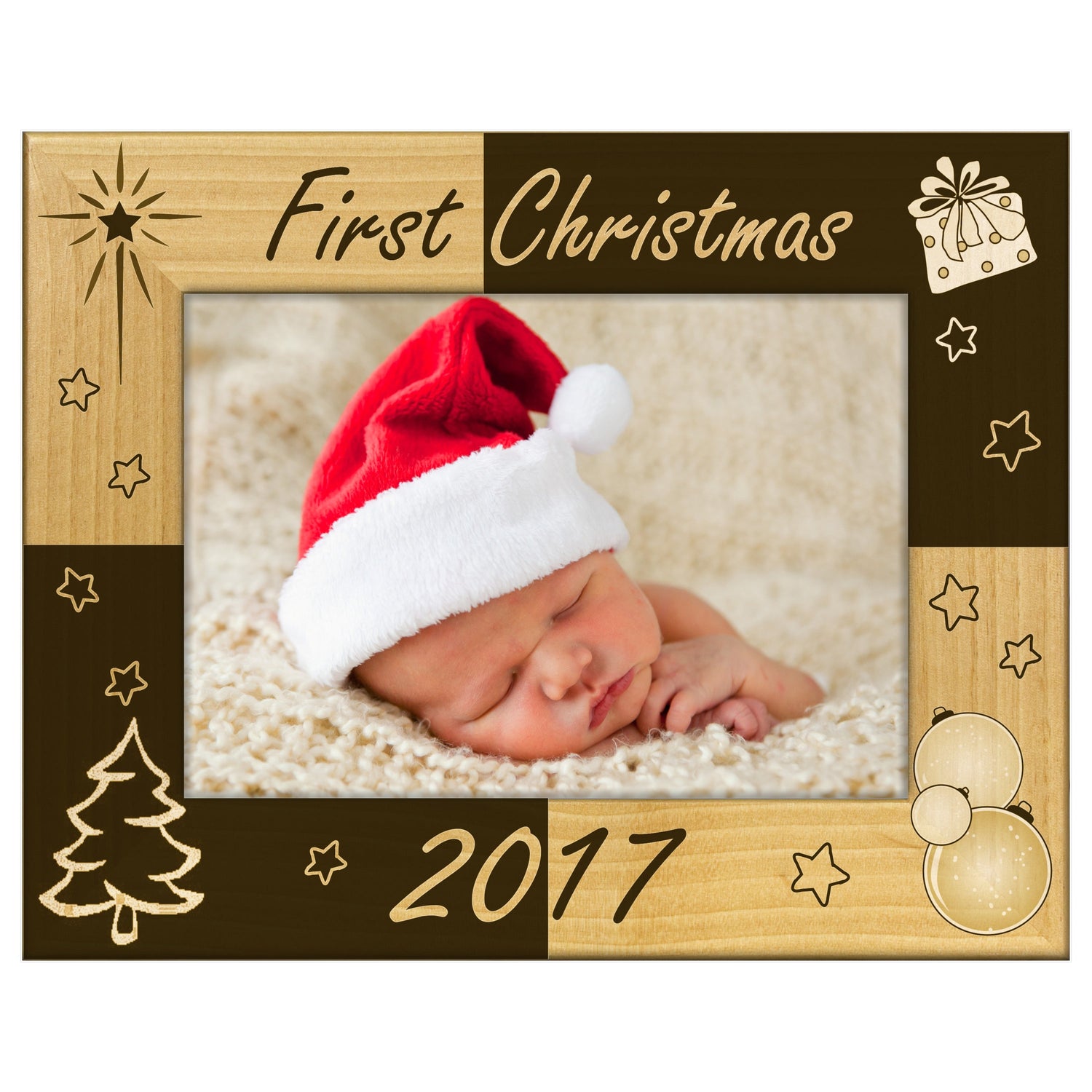 Capture the magic of your little one's first Christmas with our beautifully engraved wooden picture frame. This charming frame not only showcases your favorite holiday photo but also features a heartfelt inscription that makes it a perfect keepsake for years to come.