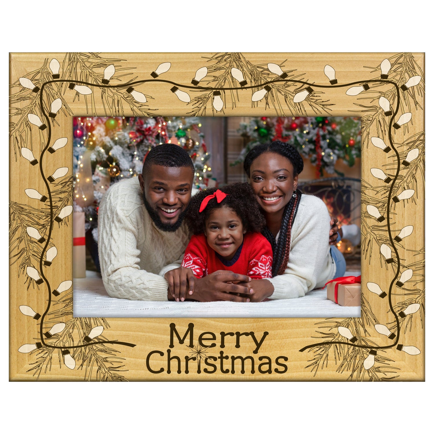 Capture the magic of the holiday season with our Christmas Lights Engraved Wooden Picture Frame! This beautifully crafted frame features a charming design that showcases twinkling lights, making it the perfect backdrop for your favorite festive memories.