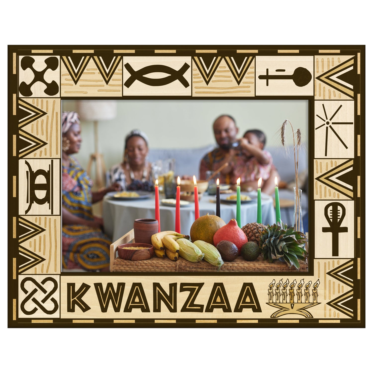 Celebrate the spirit of Kwanzaa with our beautifully engraved wooden picture frame, designed to showcase your cherished memories in style. This frame features intricate Kwanzaa symbols that add a touch of cultural elegance to any space.
