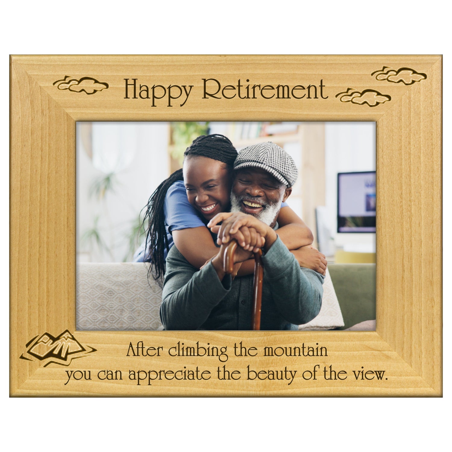 Celebrate a milestone with our Happy Retirement engraved wooden picture frame. This elegant frame features a heartfelt engraving that adds a personal touch to any retirement celebration.