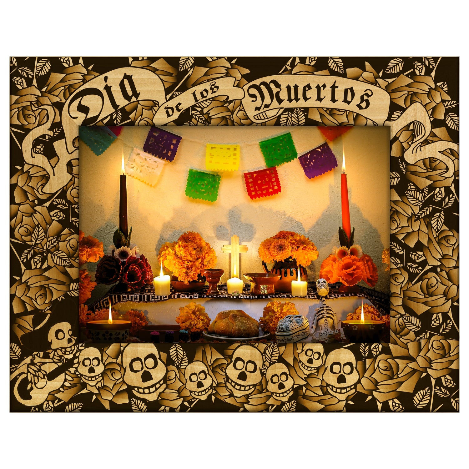 Celebrate life and memories with our Day of the Dead Roses Engraved Wooden Picture Frame. This beautifully crafted frame features intricate rose engravings that pay homage to the vibrant traditions of Día de los Muertos.